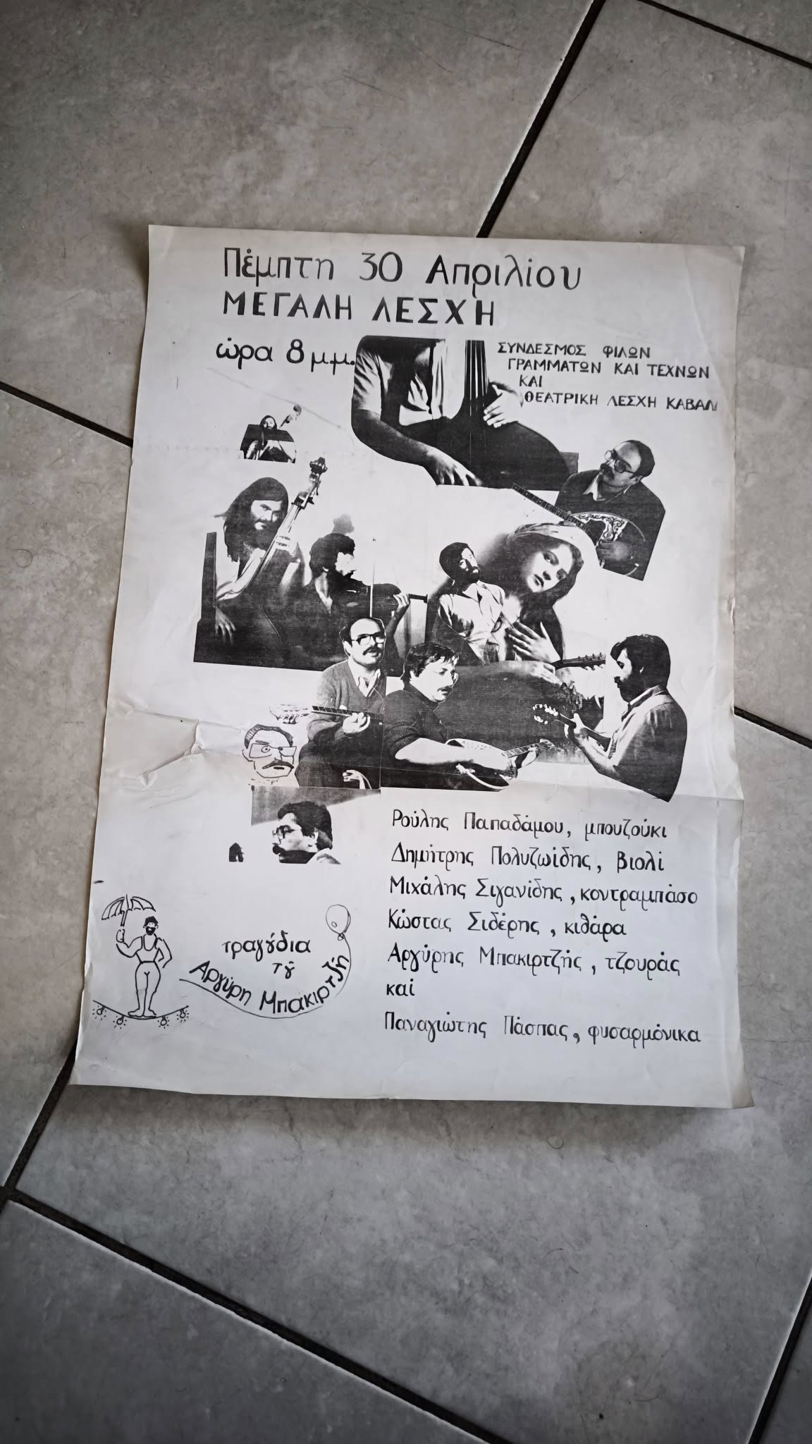 Εγώ έπαιξα ήδη μπουζούκι από την Β’ Γυμνασίου. Αυτό κυρίως συντέλεσε το να προχωρήσουμε σε μία πρώτη συνεργασία. Με το μπουζούκι που του χάρισα, όπως ο ίδιος αναφέρει στο δίσκο, προχωρήσαμε σε ένα βαθύτερο καλλιτεχνικό δέσιμο. Αρχίσαμε να παίζουμε μαζί αυτοδιδασκούμενοι και ακούγοντας κυρίως μόνο δίσκους γραμμοφώνου. Τα παλιότερα τραγούδια, αφού είχαν μεσουρανήσει, είχαν αφεθεί να ξεχαστούν. Έτσι έπρεπε από την μεριά μας να τα ξανακαλύψουμε. Αυτή ήταν η πρώτη περίοδος η μυσταγωγική με πολύ άκουσμα και αρκετό παίξιμο.