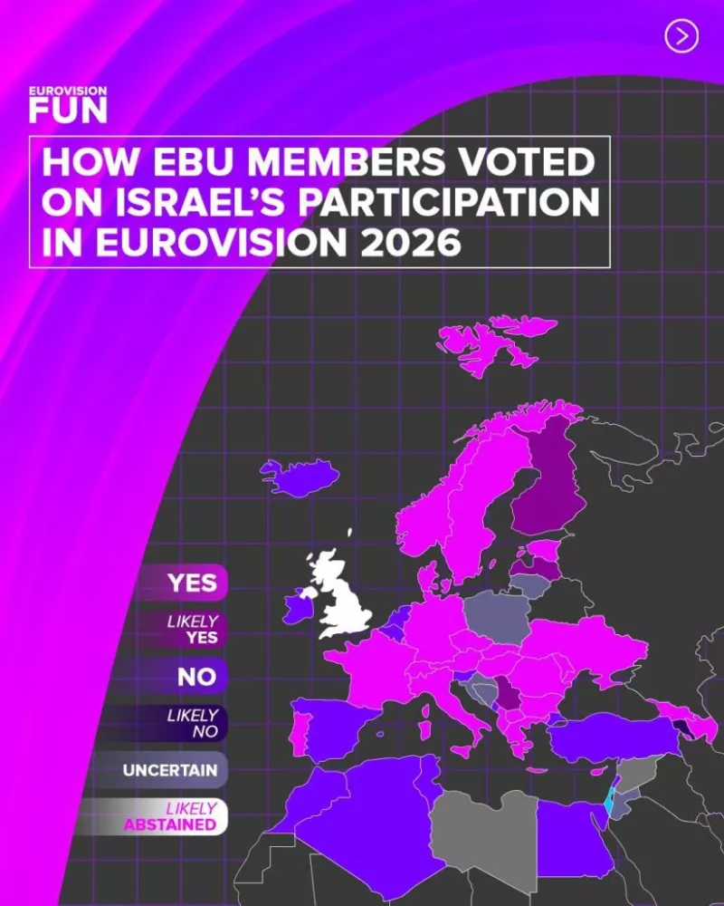Η απόφαση της παραμονής και συμμετοχής του Ισραήλ στον διαγωνισμό της Eurovisιon 2026, που θα γίνει τον ερχόμενο Μάιο στη Βιέννη, οδήγησε στην αποχώρηση της Ισπανίας, της Ολλανδίας, της Ιρλανδίας και της Σλοβενίας από την επικείμενη διοργάνωση.