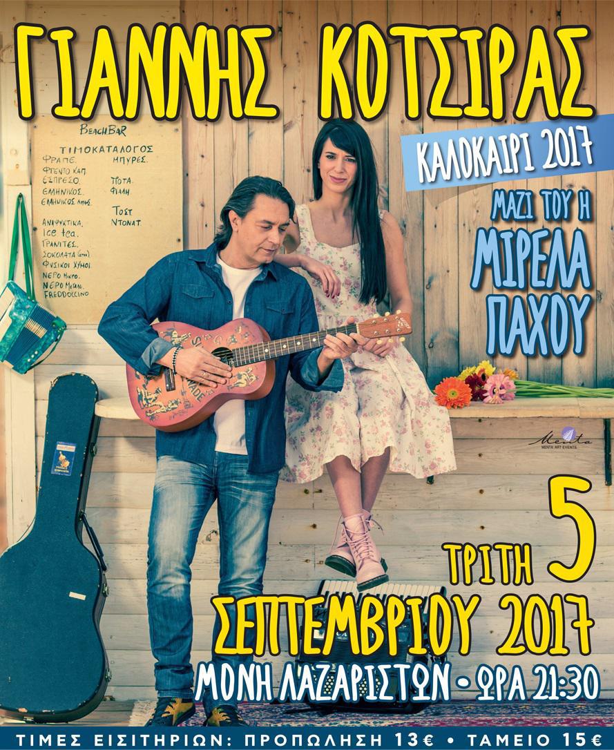 Το καλοκαίρι παίρνοντας στις αποσκευές του τον τελευταίο του δίσκο και έχοντας τώρα στο πλάι του τη Μιρέλα Πάχου, ο Γιάννης Κότσιρας θα παρουσιάσει ένα διαφορετικό, γεμάτο εκπλήξεις πρόγραμμα, από το οποίο δεν θα λείπουν φυσικά και παλιότερα αγαπημένα ή λιγότερο γνωστά τραγούδια..