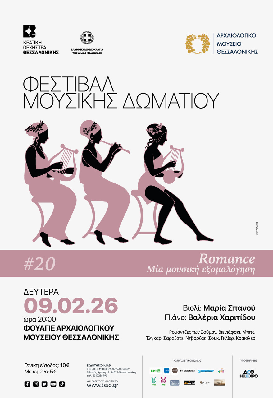 Το επιτυχημένο Φεστιβάλ Μουσικής Δωματίου που συνδιοργανώνουν η Κρατική Ορχήστρα Θεσσαλονίκης και το Αρχαιολογικό Μουσείο Θεσσαλονίκης, με την υποστήριξη του Υπουργείου Πολιτισμού, εισέρχεται δυναμικά στον 3 ο χρόνο ζωής του, ως αποτέλεσμα της μεγάλης αγάπης του κοινού για τις δράσεις του. Η πρώτη συναυλία του νέου έτους είναι μία βαθιά συναισθηματική «μουσική εξομολόγηση» μέσα από διάσημες ρομάντζες κορυφαίων συνθετών, όπως οι Σούμαν, Βιενιάφσκι, Μπιτς, Έλγκαρ, Σαραζάτε, Ντβόρζακ, Σουκ και Γκλίερ, που ξεκινούν από τα μέσα του 19 ου αιώνα και φτάνουν ως τις αρχές του 20 ου.
