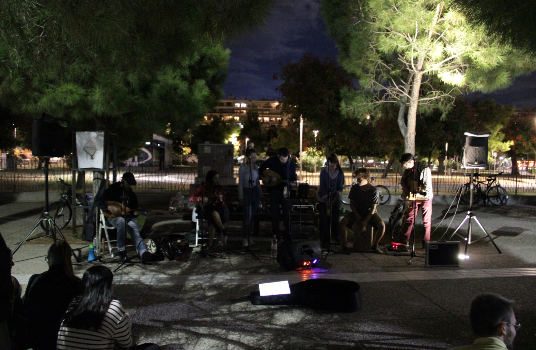 Βροχερή Παρασκευή βράδυ, λίγο μετά την καραντίνα, λίγες μέρες αφότου άρθηκαν τα μέτρα, γυρνούσα από την δουλειά κουρασμένη. Φτάνοντας λοιπόν στην Αριστοτέλους, στο ύψος του αστυνομικού τμήματος, απέναντι κάτω από το υπόστεγο, 6 παιδιά έπαιζαν μουσική, την οποία και δεν συνηθίζουμε να ακούμε στους δρόμους της πόλης.