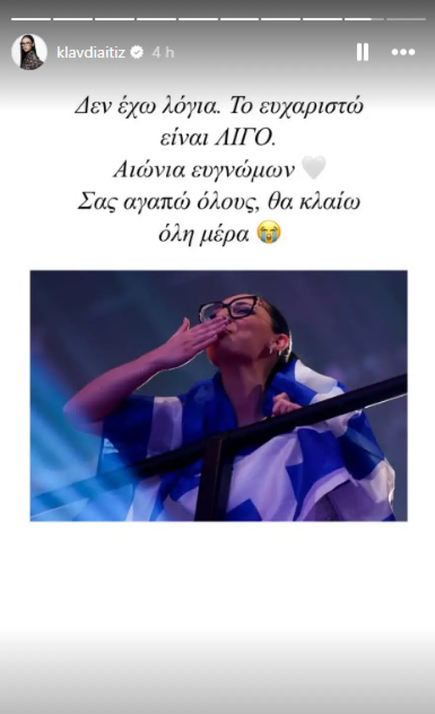 Υπερήφανη και χαρούμενη δήλωσε για την εκπληκτική ερμηνεία της η Κλαυδία στις πρώτες δηλώσεις μετά την κατάκτηση της 6ης θέσης στην Eurovision.