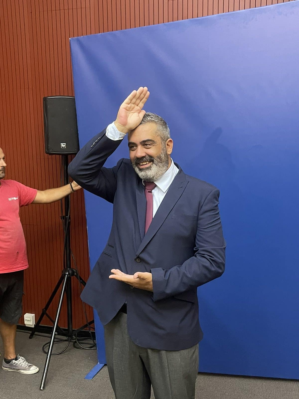 Ως αντιπρόεδρος του Σωματείου Διερμηνέων Ελληνικής Νοηματικής Γλώσσας τονίζει ότι διεκδικούν την αναγνώριση του επαγγέλματός τους με μόνιμη παρουσία διερμηνέων σε νευραλγικούς τομείς ενώ ο ίδιος έχει ιδρύσει και λειτουργεί διαδικτυακά σχολή ελληνικής νοηματικής γλώσσας.