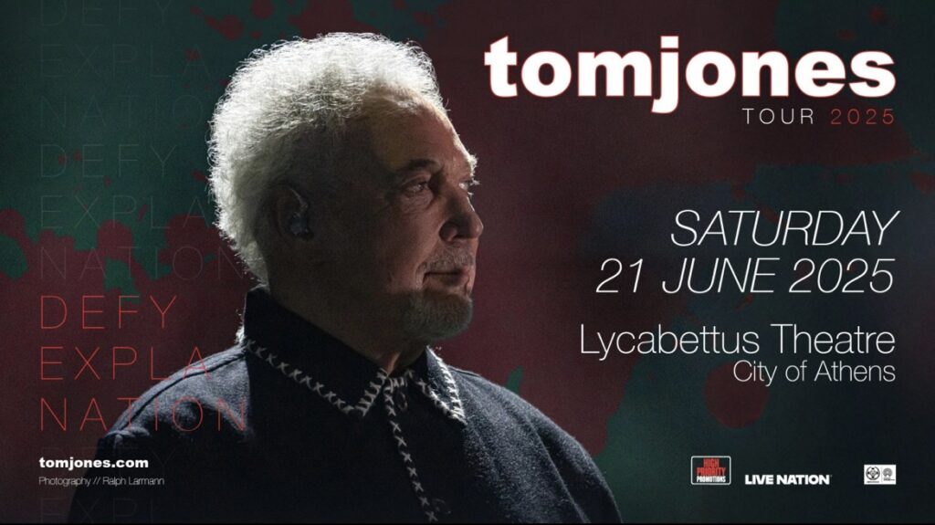 Ο θρυλικός Ουαλός τραγουδιστής, Sir Tom Jones, έρχεται για πρώτη φορά στην Αθήνα για μια ανεπανάληπτη συναυλία, το Σάββατο 21 Ιουνίου, στο ανανεωμένο Δημοτικό Θέατρο Λυκαβηττού. Μια ξεχωριστή βραδιά γεμάτη διαχρονικές επιτυχίες και αξεπέραστη σκηνική παρουσία!