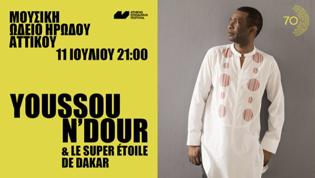 Την Παρασκευή 11 Ιουλίου 2025, ο Γιουσού Ν΄Ντουρ θα βρεθεί στο Ηρώδειο για μια μοναδική εμφάνιση στο πλαίσιο του Φεστιβάλ Επιδαύρου Αθηνών.