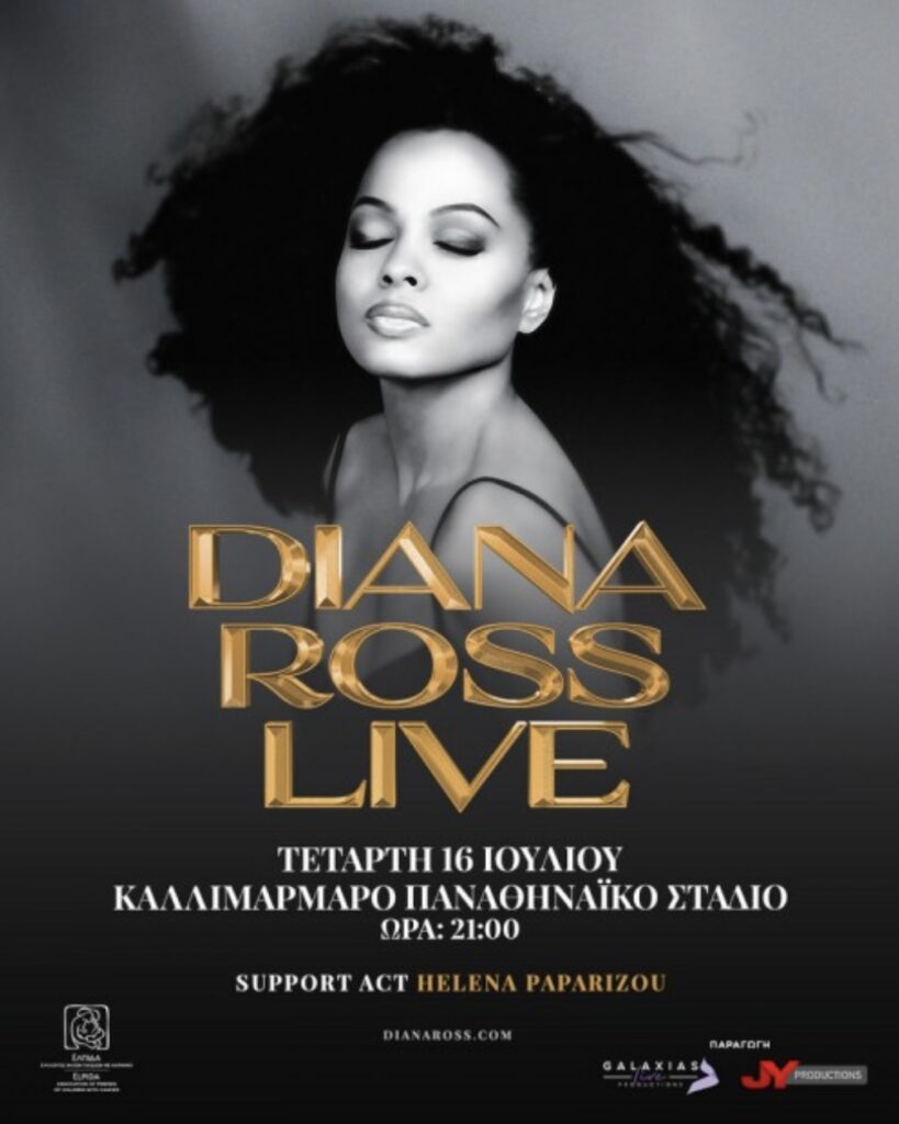 Η Diana Ross η θρυλική ντίβα της soul, έρχεται αυτό το καλοκαίρι στην Αθήνα για μια ανεπανάληπτη συναυλία στο Καλλιμάρμαρο! Η απόλυτη star της παγκόσμιας μουσικής σκηνής, θα εμφανιστεί για μία και μοναδική βραδιά, στο εμβληματικό Καλλιμάρμαρο Παναθηναϊκό Στάδιο, την Τετάρτη 16 Ιουλίου 2025!