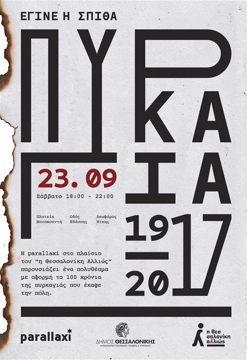 Η Κ.Ο.Θ. ο Σύλλογος Μονίμων Υπαλλήλων της Κ.Ο.Θ. και οι φίλοι τους συμμετέχουν στις δράσεις του «Θεσσαλονίκη Αλλιώς» στο πλαίσιο του «Έγινε η σπίθα πυρκαγιά…» με αφορμή την συμπλήρωση 100 χρόνων από την πυρκαγιά του 1917. Σχήματα μουσικών της ορχήστρας θα παρουσιάσουν ένα αναπάντεχο μουσικό happening, εμπνευσμένο από την Πυρκαγιά, το οποίο θα εξελιχθεί στον Πολυχώρο Ύψιλον (Πρώην Κιουρτζί Χαν), το δρόμο και την πλατεία Εμπορίου.