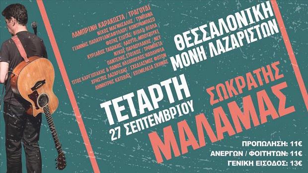 Την μοναδικότητα της μουσικής του γραφής και ερμηνείας μέσω της χαρακτηριστικής του παρουσίας επί σκηνής αναμένεται να φέρει ο Σωκράτης Μάλαμας στη μικρή σκηνή της Μονής Λαζαριστών με αποδέκτες το κοινό της Θεσσαλονίκης συστήνοντάς του και τον νέο του δίσκο, «Κάτοπτρα».