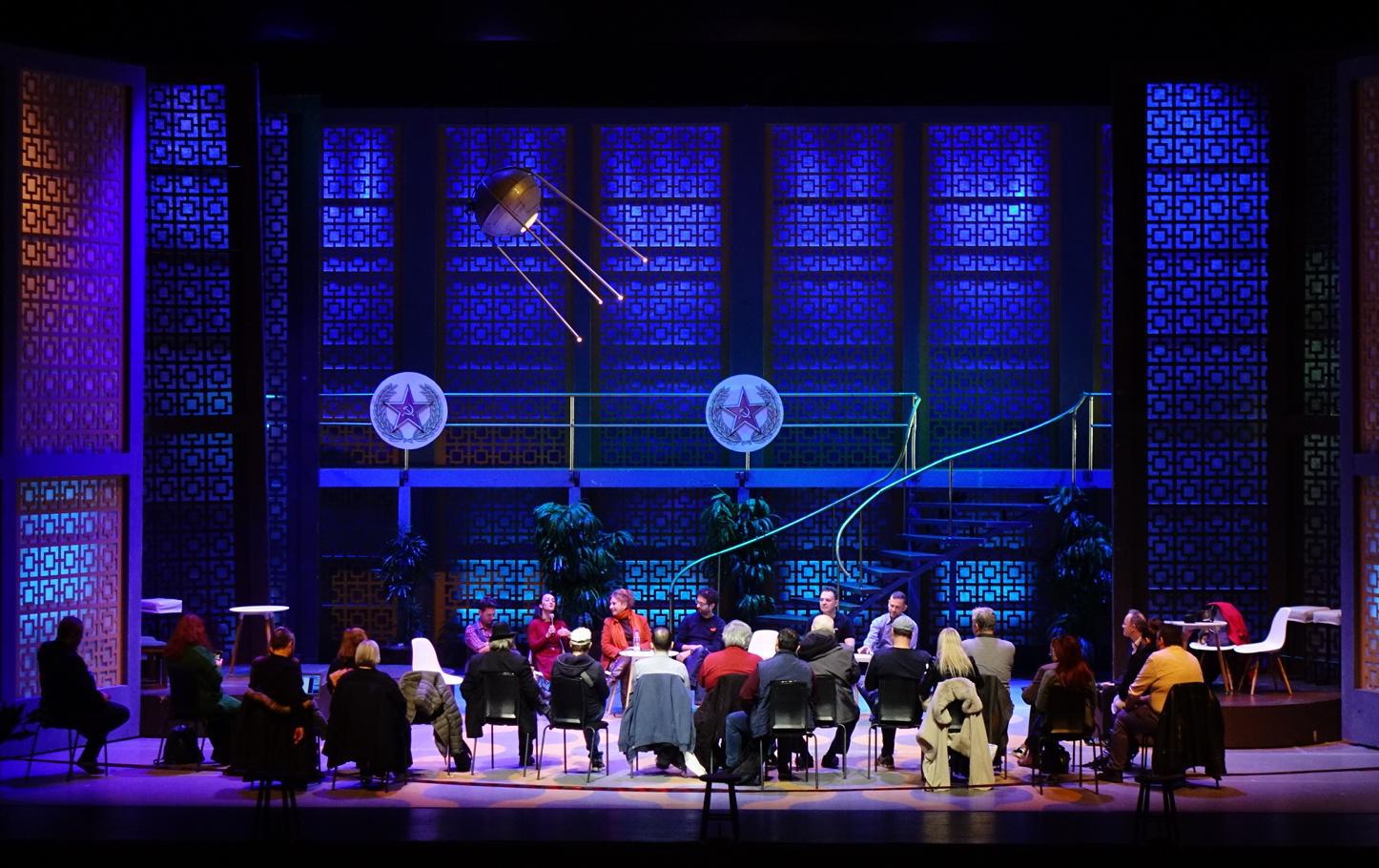Μέσα στο εντυπωσιακό σκηνικό δόθηκε σήμερα Δευτέρα συνέντευξη Τύπου για την παρουσίαση της διάσημης οπερέτας. Παρόντες ήταν οι βασικοί συντελεστές της μεγάλης αυτής παραγωγής του Μεγάρου, η οποία σηματοδοτεί την επιστροφή του ΟΜΜΘ στην όπερα έπειτα από τρία χρόνια. Σ’ αυτό το γεγονός επέμεινε ιδιαίτερα και ο πρόεδρος του δ.σ. του ΟΜΜΘ Νικήτας Μυλόπουλος, ο οποίος υπογράμμισε για άλλη μια φορά ότι οι συνέργειες και συνεργασίες μεταξύ των πολιτιστικών φορέων είναι μονόδρομος (υπενθυμίζεται πως η παράσταση παρουσιάζεται με τη συνεργασία της Κρατικής Ορχήστρας Θεσσαλονίκης, ενώ πρωτοανέβηκε στην Εθνική Λυρική Σκηνή το 2014 με τους ίδιους βασικούς συντελεστές αλλά με άλλη διανομή, χορωδία και ορχήστρα).