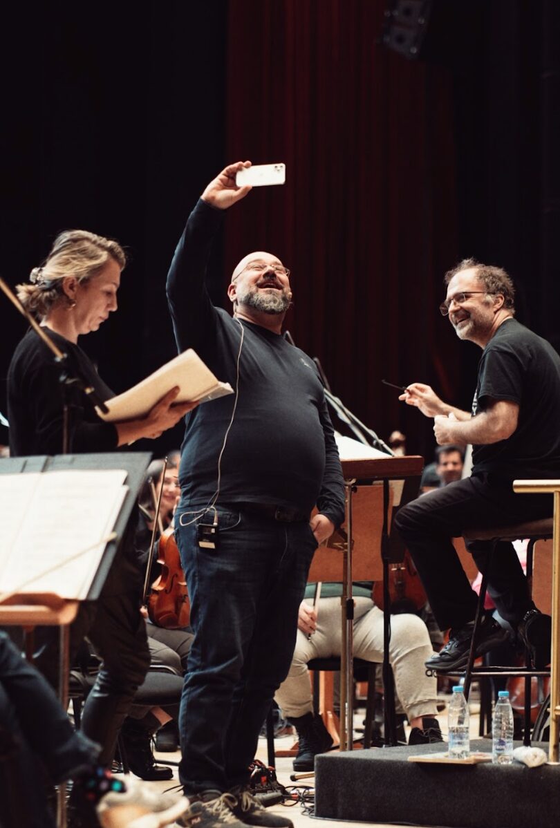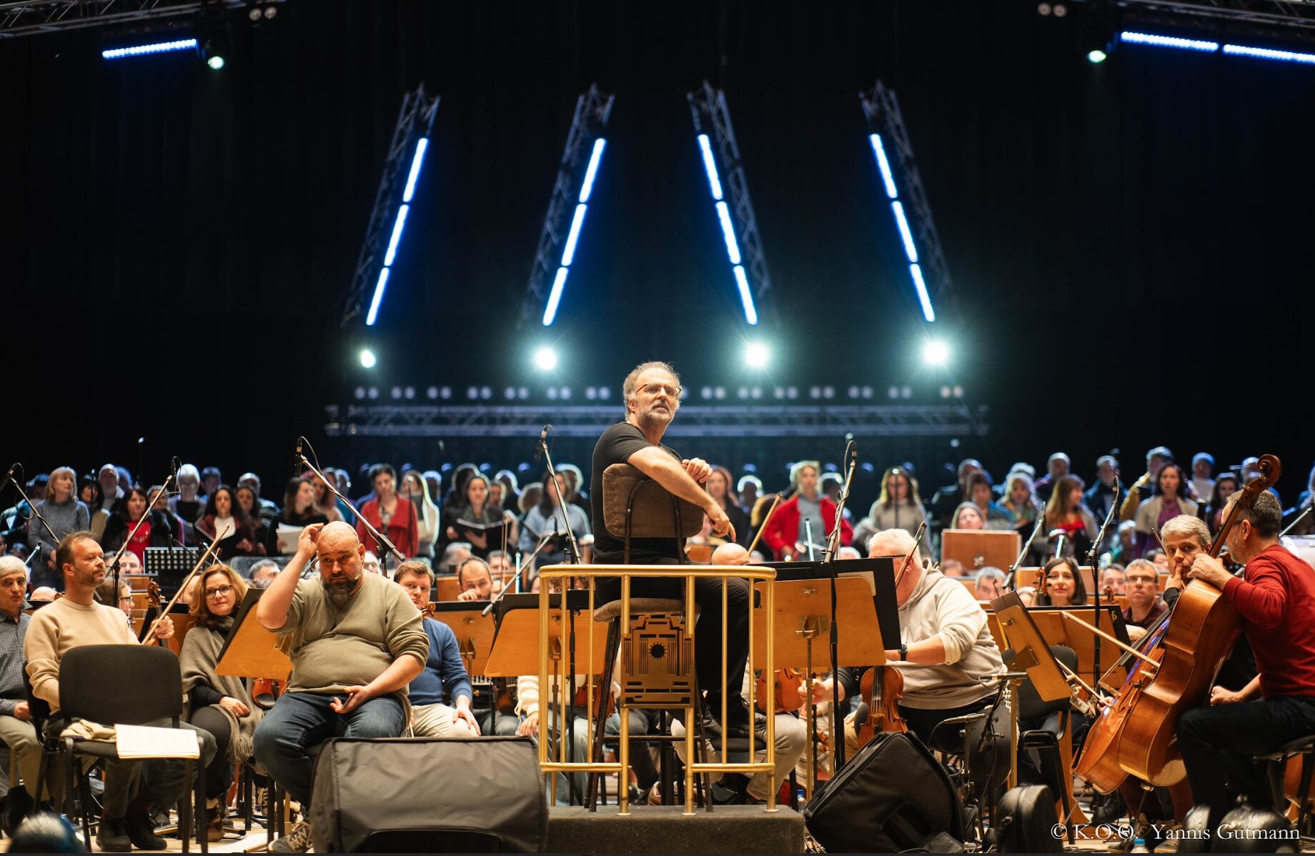 Συνολικά 25ο άνθρωποι θα καθίσουν σε λίγο στην σκηνή για την πρώτη πρόβα. Εκεί και οι τρεις διευθυντές των ορχηστρών που θα συντονίσουν το εγχείρημα.