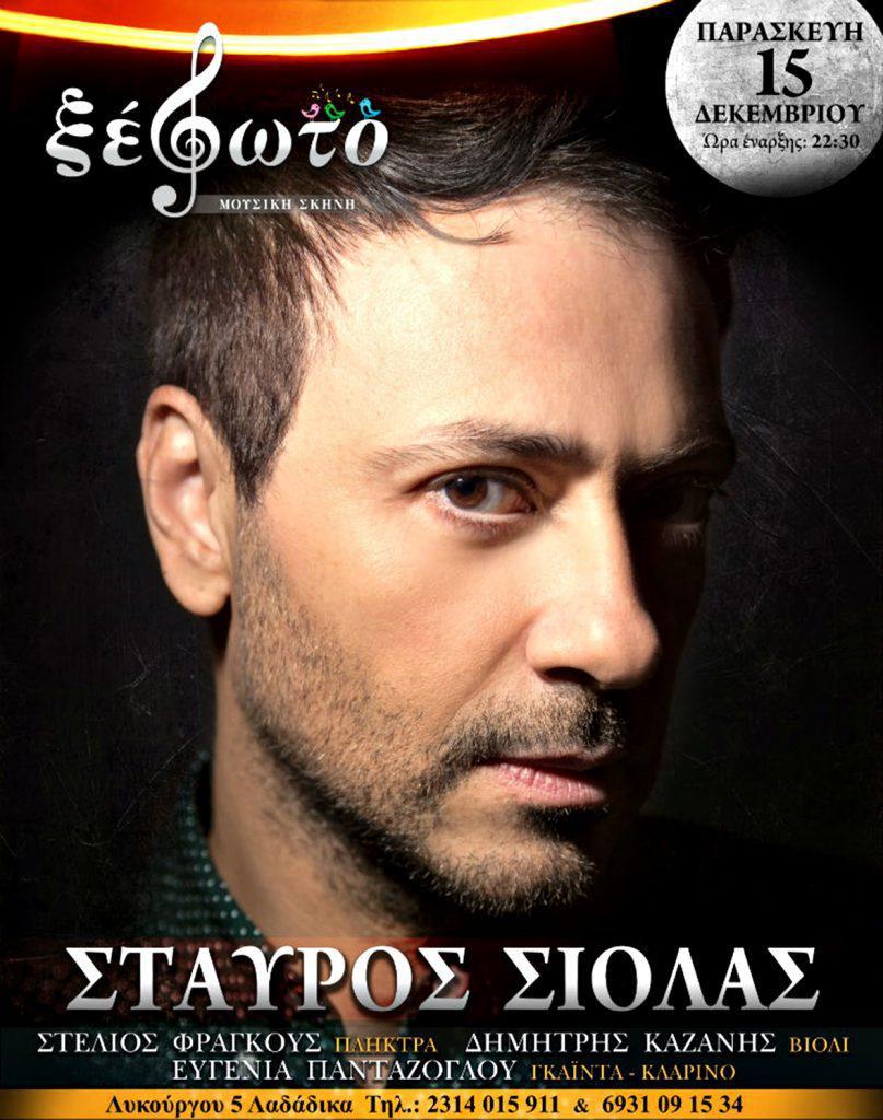 Μια φωνή ιδιαίτερη, φερμένη από αλλού. Ένας τραγουδοποιός ξεχωριστός, με παραδοσιακή μουσική ρίζα αλλά και σύγχρονη αισθητική. Ο Σταύρος Σιόλας, έρχεται στο ΞΕΦΩΤΟ, μόνο για ένα βράδυ, την Παρασκευή 15 Δεκεμβρίου. Έτσι το «λίγο», γίνεται ξαφνικά πολύ. Από «της Άρνης το νερό» μέχρι τα «Διόδια», το «Κάθε φορά», το «Χωρίς Εσένα», τα «σύννεφα» και πολλά άλλα, τα τραγούδια του Σταύρου Σιόλα αναστατώνουν τα «μέσα μας».