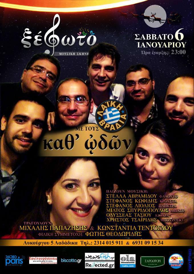 *Σάββατο 6/1 στις 23:00 στο Ξέφωτο, Λυκούργου 5, Λαδάδικα, Κρατήσεις: 2314015911 & 6931091534. Ελάχιστη κατανάλωση 10 ευρώ.