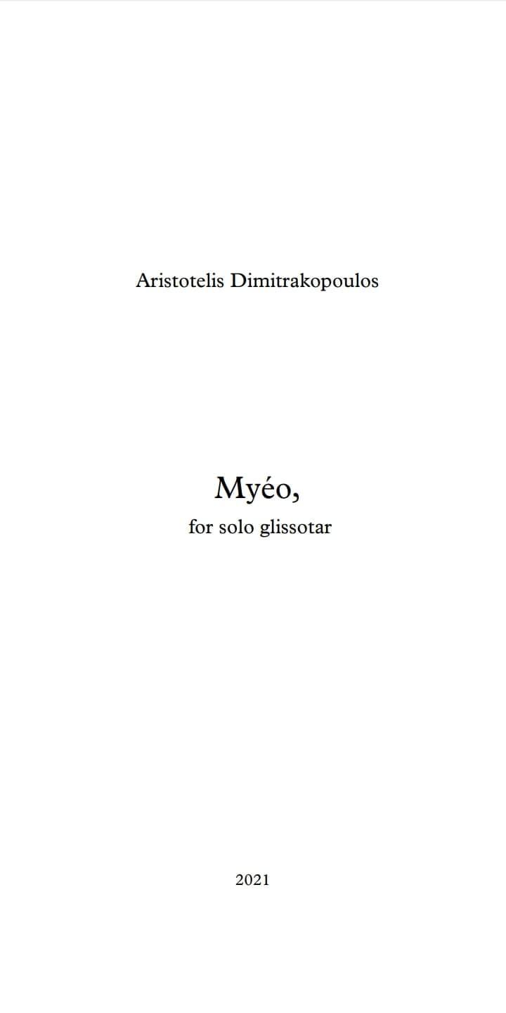 «Σαν νέος συνθέτης, εξερευνώ και μελετώ τρόπους προσέγγισης και εφαρμογής των λαϊκών και λόγιων τροπικών μουσικών παραδόσεων του κόσμου, μέσω της σύγχρονης μουσικής τέχνης και πράξης. Παράλληλα ο αυτοσχεδιασμός και η επιτόπια μουσική σύνθεση, επικοινωνούν με τις “δονήσεις” των δύο αξόνων συνθετικού ενδιαφέροντος μου: Την ευρωπαϊκή μουσική πράξη και το βίωμα της Παράδοσης. Κάπως έτσι, μέσα από την προσωπική δόμηση, αποδόμηση και επαναδόμηση της έννοιας της παράδοσης, σαν απόσταγμα και μίγμα όλων των παραπάνω, προέκυψε και το έργο: Myéo, για solo glissotar. Μυέω-μυώ (Myéo), σαν ενεργητικό ρήμα ορίζεται ως η εισαγωγή κάποιου σε μια οργάνωση(ένα μυστήριο) και η καθοδήγηση και αποκάλυψη των μυστικών, των σκοπών της.