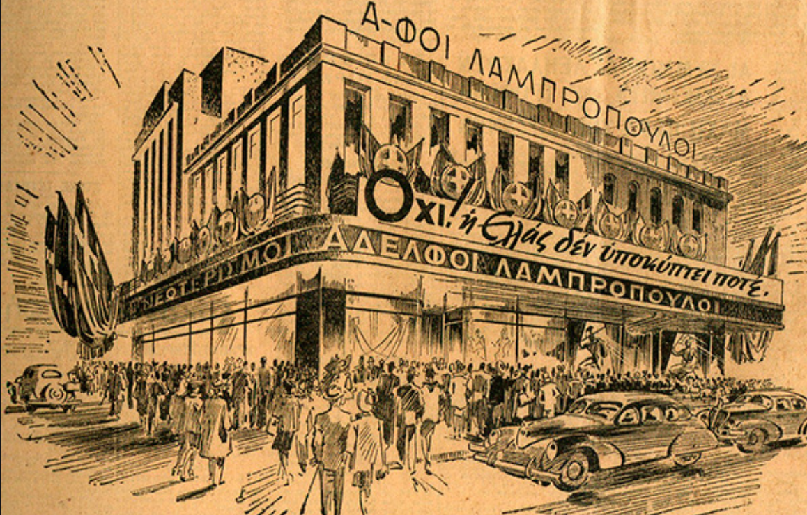 Κι να η ευκαιρία, κάποια στιγμή συναντώ στη ρεσεψιόν τον κ. Τάκη Λαμπρόπουλο. Ασχολούνταν πια με το εμπόριο και η επίσκεψη του στη Θεσσαλονίκη αφορούσε το μεγάλο κατάστημα. Αφοί Λαμπρόπουλοι στην Τσιμισκή. Δεν ήταν η πρώτη φορά που τον έβλεπα στο ξενοδοχείο αλλά δεν ήθελα να τον πλησιάσω κι να του μιλήσω γιατί οι γνώσεις μου ήταν ελλιπείς. Τούτη τη φορά όμως ήμουν πανέτοιμος. Έμαθα πως η κράτηση που είχε κάνει ήταν για τέσσερις μέρες, οπότε έπρεπε να τα καταφέρω να τον πλησιάσω. Τις περισσότερες φορές μόνος στην αίθουσα του πρωινού, στο ρεστοράν ή σε κάποια γωνιά του σαλονιού πίνοντας τον καφέ του σημειώνοντας κάτι και πάντα βιαστικός να φεύγει. Βρήκα την κατάλληλη ευκαιρία μετά από μεγάλη αγωνία και τον πλησίασα. Με κοίταξε με έκπληξη παρατηρώντας τον σερβιτόρο που είχε μπροστά του να τον ρωτά αν είναι ο κ. Λαμπρόπουλος της εταιρίας Κολούμπια. Μετά από ένα βεβιασμένο χαμόγελο απάντησε ”Ναι, είμαι ο κ. Λαμπρόπουλος αλλά όχι πια της εταιρίας Κολούμπια και αναρωτιέμαι γιατί με ρωτάτε’’.