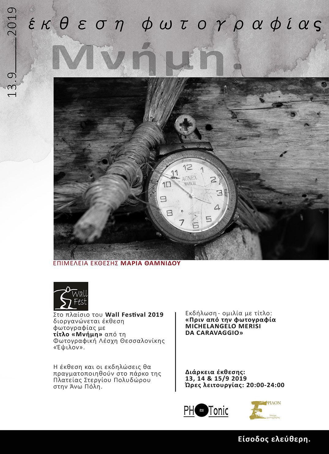 Στο πλαίσιο του Wall Festival 2019 διοργανώνεται έκθεση φωτογραφίας με τίτλο «Μνήμη» από τη Φωτογραφική Λέσχη Θεσσαλονίκης «Έψιλον».