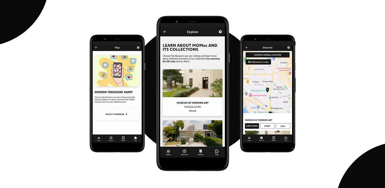 την εφαρμογή για κινητές συσκευές MOMus tour & play, που αποτελεί τον απόλυτο τουριστικό ξεναγό για τα σημεία του MOMus σε Θεσσαλονίκη και Αθήνα και περιλαμβάνει διαδραστικά παιχνίδια Κρυμμένου Θησαυρού,