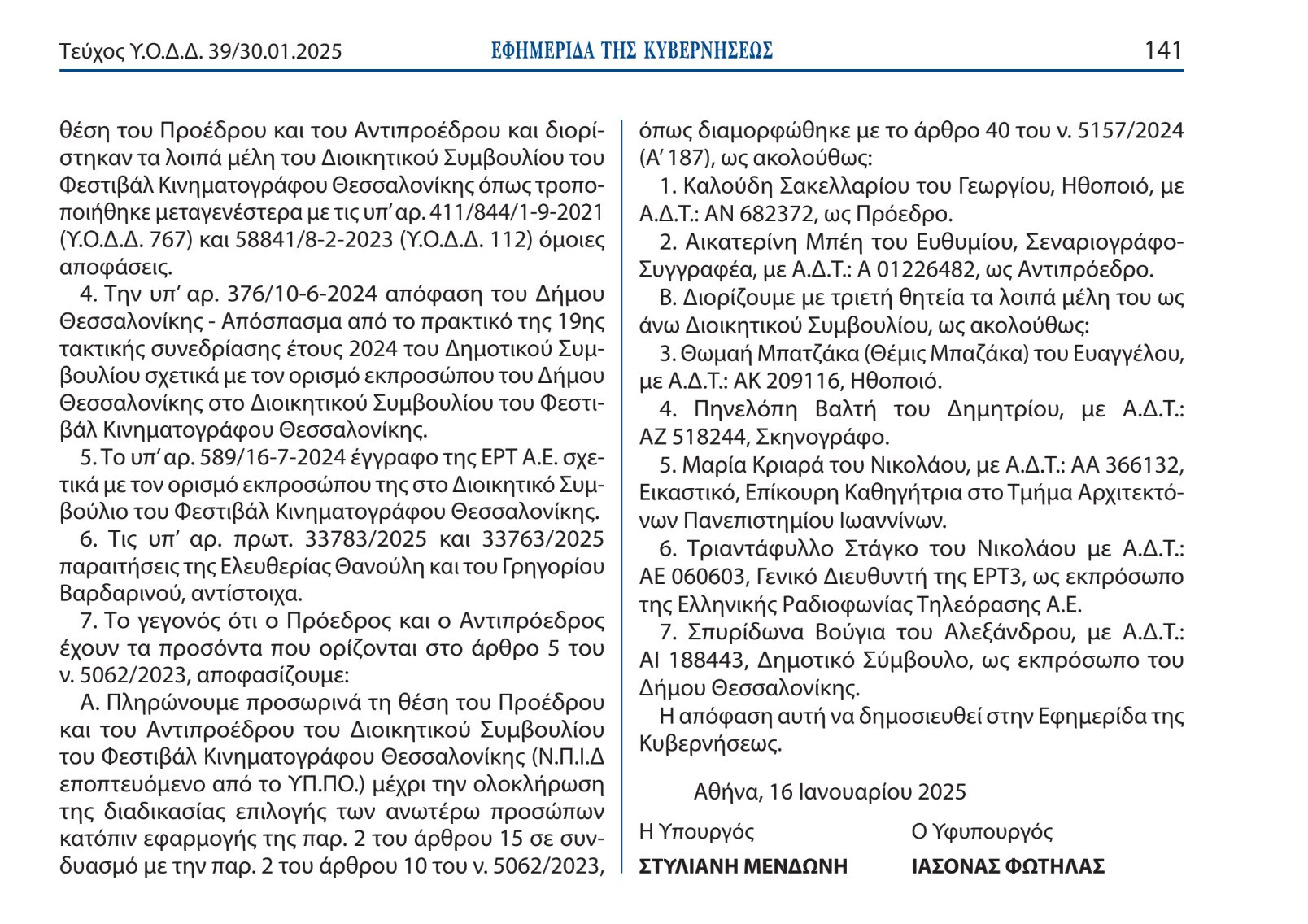 Ακολουθεί το ΦΕΚ του διορισμού τους: