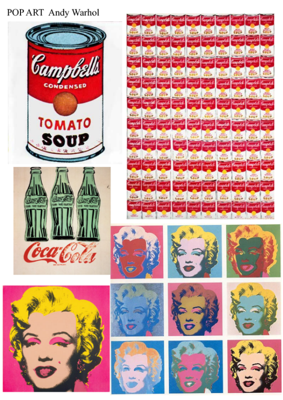 Σαράντα χρόνια πριν την παγκοσμιοποίηση ο προφήτης της Ποπ αρτ βάζει τις βάσεις. Στα 1869 ο Τζόζεφ Κάμπελ, ένας φρουτέμπορος από το Νιου Τζέρσι συσκεύασε σε μια κονσέρβα μια σούπα ντομάτας με καρυκεύματα και λαχανικά. Από το 1897 που κυκλοφόρησε σε όλη την Αμερική έγινε το δημοφιλέστερο έτοιμο γεύμα των αμερικάνων που δεν έλειπε από κανένα τραπέζι. Ο Άντι το έτρωγε κάθε μέρα για είκοσι χρόνια. Το 1962 αποφάσισε πως το κονσερβοκούτι της σούπας έχει τεράστια δύναμη. Φτιάχνει το πρώτο του έργο με την εικόνα του κουτιού. Αργότερα το κλωνοποιεί σε έναν ατέρμονο πολλαπλασιασμό, κάτι που θα κάνει με όλα τα έργα του. Η ιδέα της κλωνοποιήσης γεννιέται στην τέχνη, η σούπα αρχίζει και πουλά σαν τρελή για να φτάσει δέκα χρόνια μετά το θάνατο του στα 3,5 εκατομμύρια δολάρια σε μια δημοπρασία με τη ‘’Σχισμένη ετικέτα της σούπας Κάμπελ’’. Μια γνωστή διακοσμήτρια και έμπορος έργων τέχνης η Μίριελ Λάτοβ του είχε πει στην αρχή της καριέρας του. ‘’Να ζωγραφίσεις ότι σου αρέσει περισσότερο. Ζωγράφισε τα λεφτά’’. Έτσι προέκυψε το εικονογραφημένο δολάριο, το τηλέφωνο, οι Μέριλιν, αλλά και τα κομμάτια από κόμικς, μέχρι το πρόσωπο του Μαό Τσε Τούνγκ βαμμένο σε έντονα γαλάζια χρώματα. Τα πάντα είναι καταναλωτικά προϊόντα, όσα τρώμε και πίνουμε, αλλά και όσα βλέπουμε γύρω. Όσα καταναλώνουμε και μας κάνουν να μοιάζουμε αλλά και όσοι μας επιβάλλονται ως σύμβολα και θέλουμε να τους μοιάσουμε. Η Νέα Υόρκη παραληρεί.