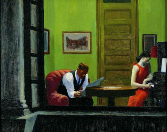 Η Αμερική του Χόπερ είναι η Αμερική της μοναξιάς, των άδειων βλεμμάτων, των ανθρώπων που στέκονται απελπισμένοι πίσω από φωτισμένα παράθυρα, των βουβών ζευγαριών στη μπάρα ενός καφέ, των άδειων θεωρείων στην όπερα, κουρείων στην άκρη της πόλης, ενός διανυκτερεύοντος βενζινάδικου.