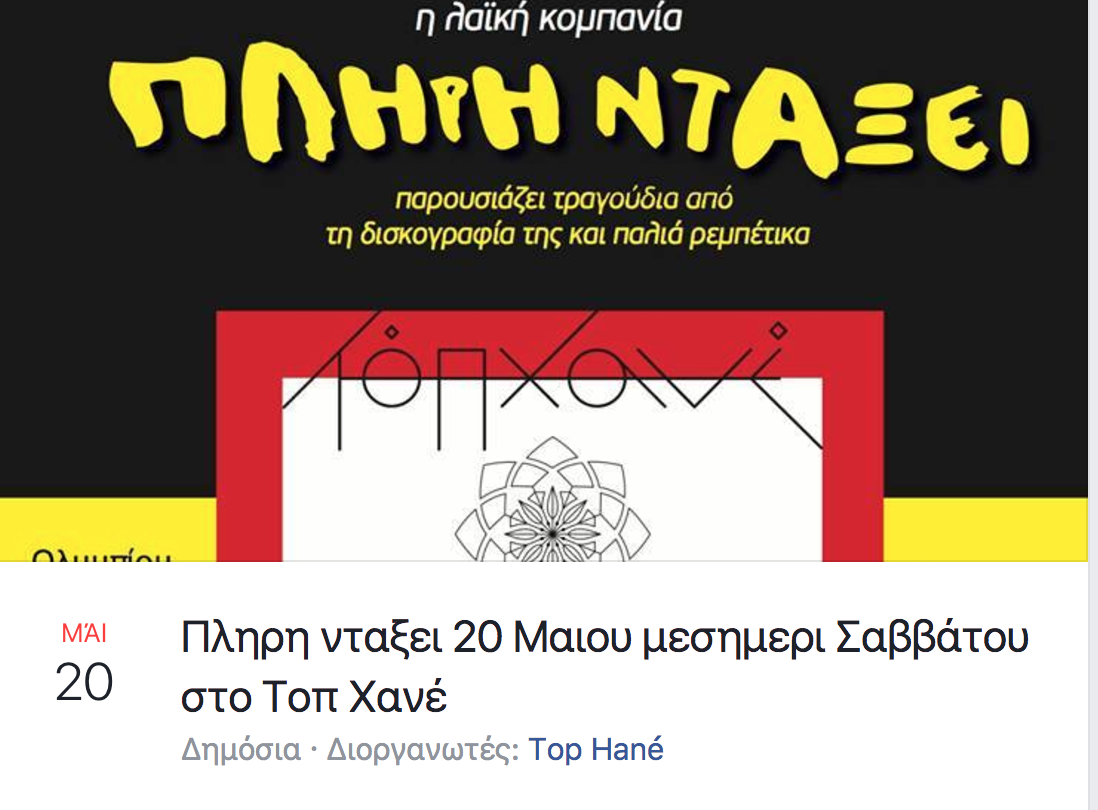 Όλα αυτη την Κυριακή θα ειναι διπλά! Διπλή γιορτή… διπλή χαρά! βάσω βασιλειάδου με Γκιντίκι Κωνσταντίνου και Ελένης! Και το Top Hané γιορτάζει με τον καλυτερο τροπο τα 3 χρόνια έναρξης του! Σας ευχόμαστε να σταθείτε γερά σε ολες τις δυσκολίες και να χαριζεται στον κοσμο όμορφες στιγμές! Σας περιμένουμε να γεμίσουμε την Ολυμπίου Διαμαντή με όλους όσους ξέρουν να γλεντούν, να καλοπερνούν, να μοιράζονται, να δίνουν τα χέρια και να γίνεται ο κύκλος μια μεγάλη αγκαλιά! Τέτοιες στιγμές που θα τις ξανά βρεις.