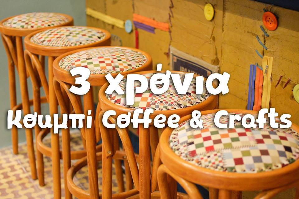 Το Κουμπί coffee & crafts γιορτάζει τα τρία χρόνια λειτουργίας του με ένα πλούσιο μηνιαίο πρόγραμμα, μια έκθεση έργων και πολλές εκπλήξεις και προσφορές. Ειδικά για τη μέρα των γενεθλίων, Σάββατο 14 Οκτωβρίου περιμένει όλους τους φίλους του από το πρωί για να κεραστούν ευωδιαστό τσάι και να δοκιμάσουν λαχταριστά γλυκά. Να θαυμάσουν τα έργα που φιλοτέχνησαν φίλοι και καλλιτέχνες με αφορμή τα 3 χρόνια Κουμπί και να ψηφίσουν το αγαπημένο τους (η έκθεση και η ψηφοφορία θα διαρκέσει έως το τέλος του μήνα). Τα έργα θα πωλούνται σε συμβολική τιμή και όλα τα έσοδα θα δωρηθούν στο ΚΕΘΕΑ ΙΘΑΚΗ.