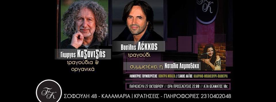 Ο Γιώργος Καζαντζής παρουσιάζει ένα κύκλο τραγουδιών του με κύριο ερμηνευτή τον υπέροχο Βασίλη Λέκκα. Συμμετέχει η Ναταλία Λαμπαδάκη που εκπροσωπεί επάξια την νέα γενιά τραγουδιστών της πόλης. Τον Γιώργο στο πιάνο συνοδεύουν οι μουσικοί Δημήτρης Γουμπερίτσης κοντρα μπάσο και Σάκης Λαϊος κλαρίνο-μπανσούρι-πλήκτρα.