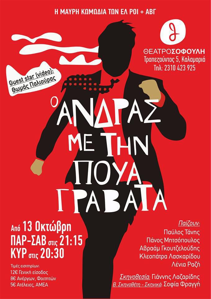 *Παρασκευή 27 και Σάββατο 28 Οκτωβρίου στις 21:15 και Κυριακή 29 Οκτωβρίου στις 20:30 στο θέατρο Σοφούλη Τιμή εισιτηρίου : 12 ευρώ Μειωμένο (Φοιτητές, άνεργοι): 8 ευρώ Ατέλειες – ΑμεΑ: 5 ευρώ