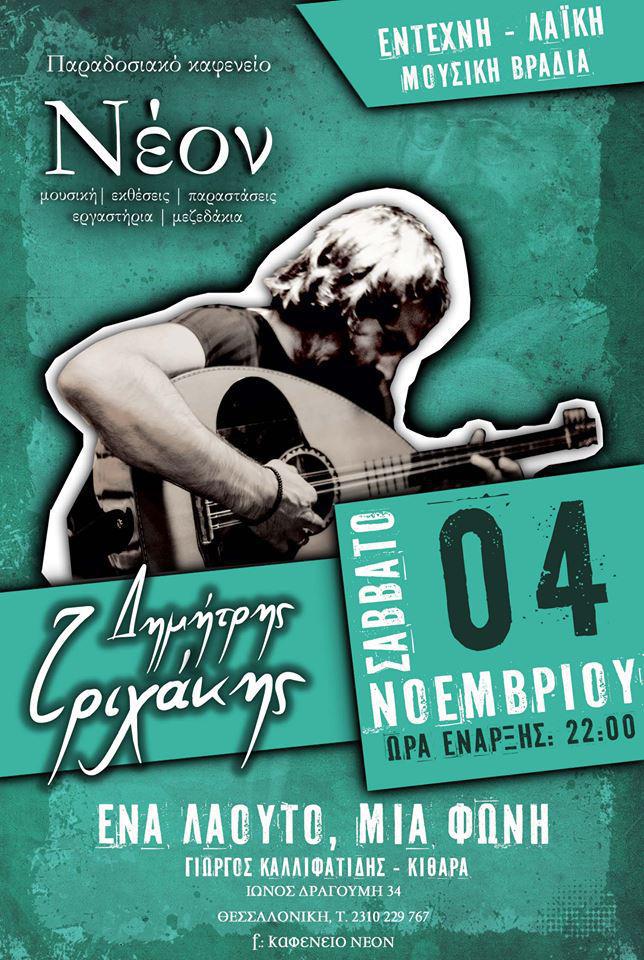 *Παρασκευή 3 Νοεμβρίου στις 21:30 στο Καφενείον ΝΕΟΝ, είσοδος 3.50 ευρώ