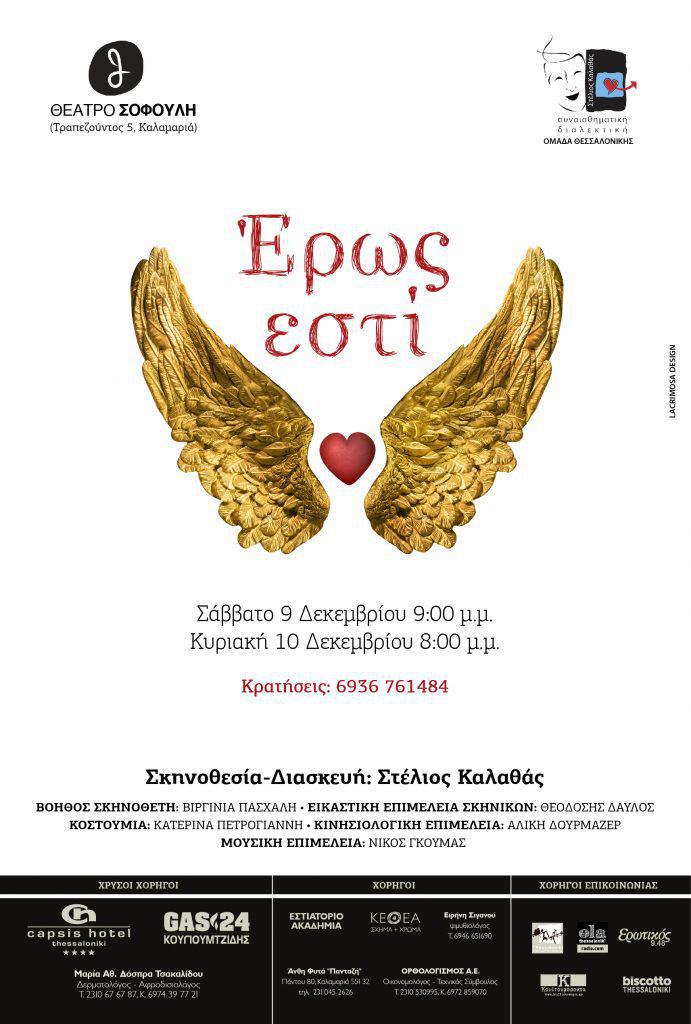 *Σάββατο 9 Δεκεμβρίου στις 21:00 και Κυριακή 10 Δεκεμβρίου στις 20:00 στο θέατρο Σοφούλη, Τραπεζούντος 5, Καλαμαριά, Τηλέφωνο Κρατήσεων 6936 761484