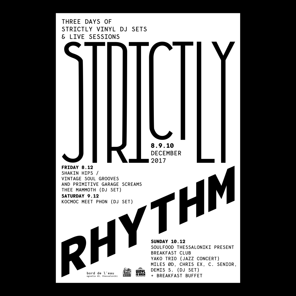 To Bord de l’ eau δεν θα μπορούσε να λείπει από το Vinyl is Back, την μεγαλύτερη γιορτή βινυλίου και μουσικής που κάνει πρεμιέρα στη Θεσσαλονίκη.Για αυτό και στις 8, 9 και 10 Δεκεμβρίου μπαίνει σε Strictly Rhythm διάθεση και προτείνει ένα τριήμερο γεμάτο μουσική, αποκλειστικά από βινύλια,με αποκορύφωμα την Κυριακή 10/12 και το Soulfood Thessaloniki present Breakfast Club με τους Yako Trio live.