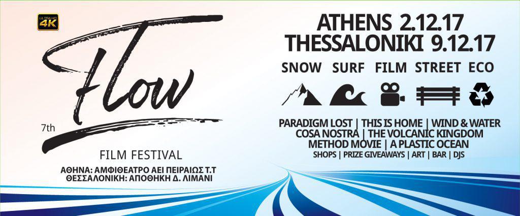 Το Flow Film Festival συμπληρώνει 7 χρόνια προβολών και side events γύρω από τα extreme sports και την περιπέτεια στην φύση.Φέτος, επιστρέφει δυναμικά στην πόλη της Θεσσαλονίκης και καλεί όλους τους λάτρεις των extreme sports και της περιπέτειας στην φύση να ζήσουν μία μοναδική κινηματογραφική εμπειρία. Το Σάββατο 9 Δεκεμβρίου στην Αποθήκη Δ του λιμανιού, οι επισκέπτες θα έχουν την ευκαιρία να παρακολουθήσουν ένα υπερθέαμα προβολών στην 4Κ οθόνη του Flow. Οι κορυφαίες ταινίες που κυκλοφόρησαν φέτος από τον πλανήτη των extreme sports θα είναι εδώ! 5 κινηματογραφικές πρεμιέρες και 2 film projects γυρισμένα αποκλειστικά στην Ελλάδα θα καθηλώσουν τον θεατή.H ευαισθητοποίηση των θεατών γύρω από την προστασία του περιβάλλοντος είναι ένας από τους νέους στόχους του Flow. Άλλωστε για να συνεχίσουμε να απολαμβάνουμε τα αγαπημένα μας σπορ στο βουνό και την θάλασσα, θα πρέπει να κατανοήσουμε την ανάγκη για προστασία του φυσικού μας πλούτου. Στο πλαίσιο αυτό έχουν ενταχθεί και παρουσιάζονται παράλληλες δράσεις (recycle, reduce, reuse), ενώ θα γίνει και προβολή της βραβευμένης ταινίας “A Plastic Ocean”.