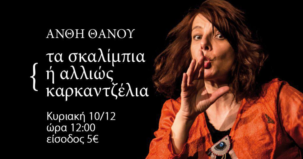 *Σάββατο 9 Δεκεμβρίου στις 18:00 στη μικρή αυλαία της Χ.Α.Ν.Θ, Γενική είσοδος: 6€ ανά άτομο, Είσοδος τρίων (3) ατόμων και άνω: 5€ ανά άτομο, Διάρκεια παράστασης: 60′