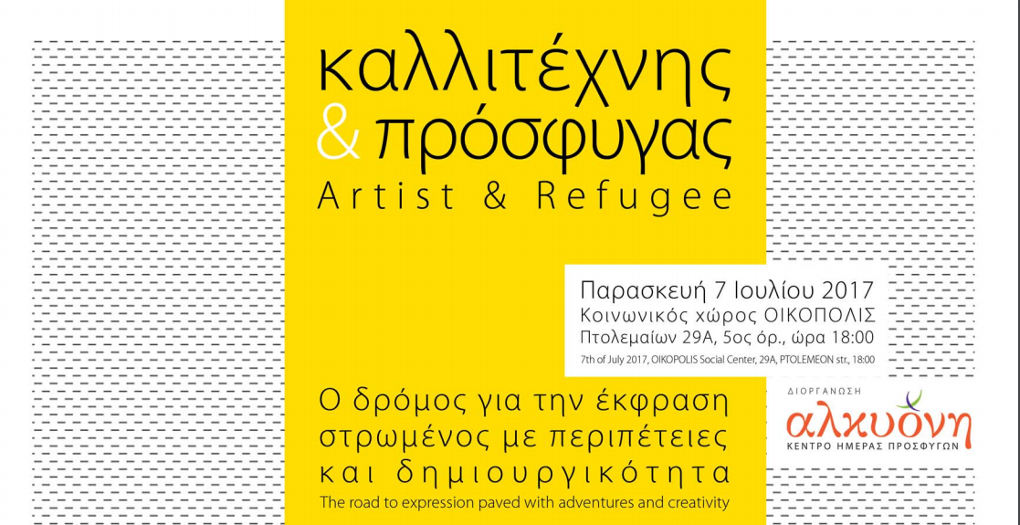 Το Κέντρο Ημέρας Προσφύγων «Αλκυόνη» της Οικολογικής Κίνησης Θεσσαλονίκης με την συνδρομή του Οικόπολις, στο πλαίσιο των δράσεων δημιουργίας διαπολιτισμικού διαλόγου και διόδων επικοινωνίας μεταξύ των προσφύγων και της τοπικής κοινωνίας διοργανώνει εκδήλωση με θέμα «Καλλιτέχνης και πρόσφυγας, ο δρόμος για την έκφραση στρωμένος με περιπέτειες και δημιουργία».