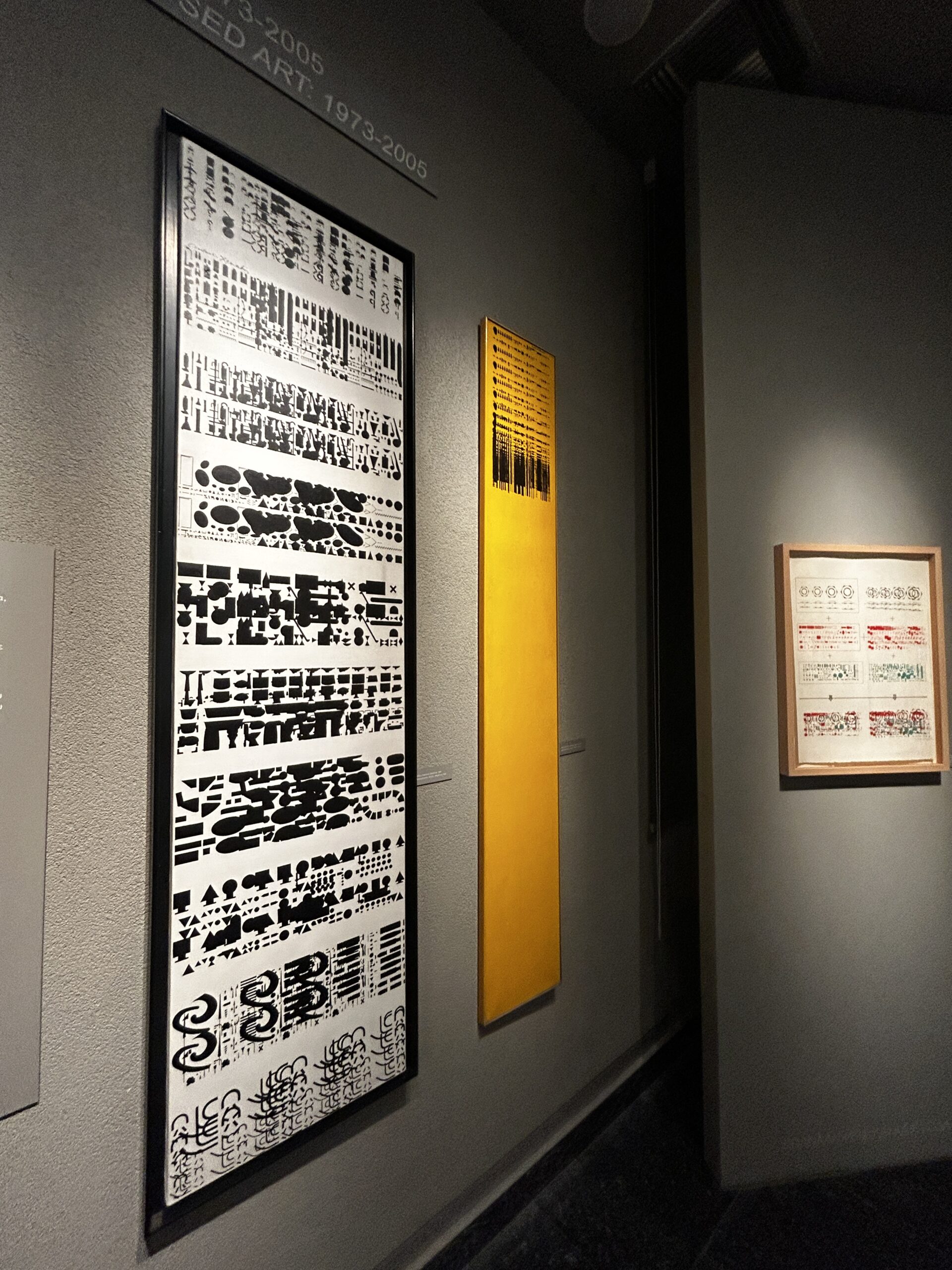 Όλο το πνεύμα και η φιλοσοφία του Ξενάκη ξεδιπλώνεται στους δύο χώρους της πινακοθήκης. Αφηρημένος εξπρεσιονισμός, φως, κίνηση και performance. Εμφανές σε πολλά από τα έργα η χρήση αιγυπτιακών αραβικών ελληνικών συμβόλων και γραμμάτων, καθώς και σημάτων της καπιταλιστικής εποχής ως μια κριτική στο φαινόμενο της παγκοσμιοποίησης και των επιπτώσεων της.
