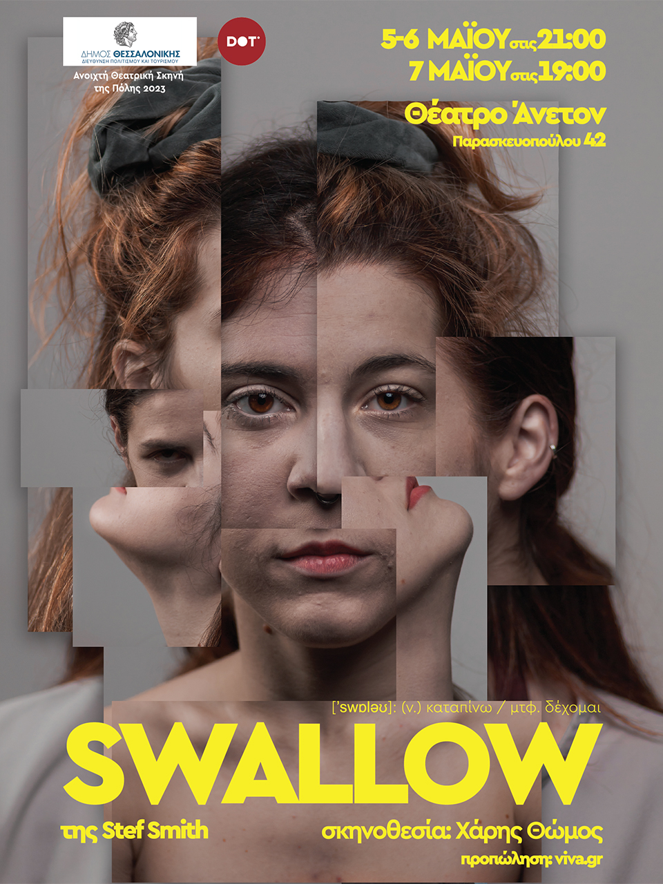 Παρ’όλα αυτά δε μου είχε μιλήσει αρκετά για να αποφασίσω να το ζωντανέψω στη σκηνή. Ο καιρός πέρασε, ήρθαν και έφυγαν οι καραντίνες και ξάφνου σε μια συζήτηση που συμμετείχα έκανα μια ασυναίσθητη αναφορά στο πώς ο απόηχος του εγκλεισμού που είχαμε ζήσει συνεχίζει ακόμα να μας ορίζει ,τόσο κοινωνικά όσο και προσωπικά, και πώς περιγράφει κάτι τέτοιο αυτό το έργο. Από το σημείο εκείνο και μετά άρχισε να ωριμάζει μέσα μου η ιδέα ότι το Swallow είναι ένα έργο με πολλά σημεία σύνδεσης και πως αξίζει να δει το κοινό της Θεσσαλονίκης.”