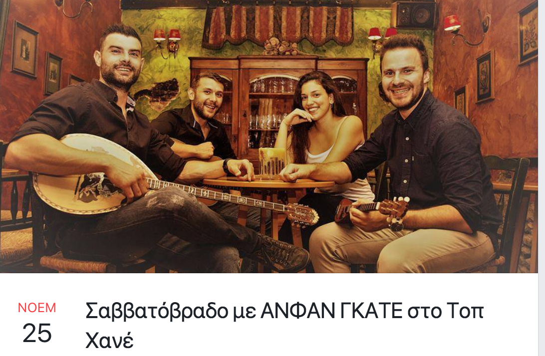 Τετάρτη 29 Νοεμβρίου (συνεχίζεται για 3η Τετάρτη στη σειρά) «ΕΙΣ ΤΟΥΣ ΠΕΝΤΕ ΔΡΟΜΟΥΣ» κωμικόν δράμα πρόζης και ρεμπέτικης μουσικής