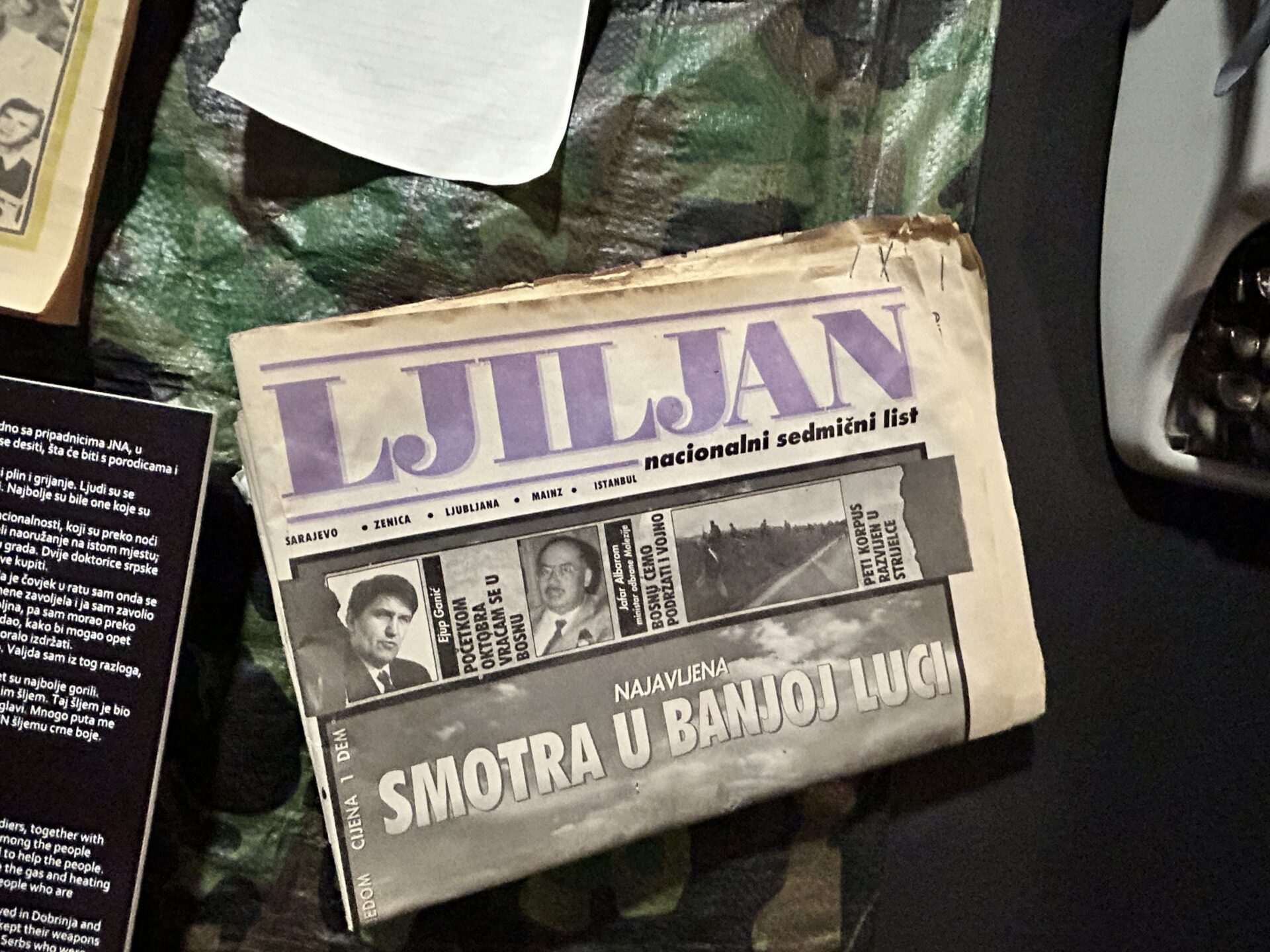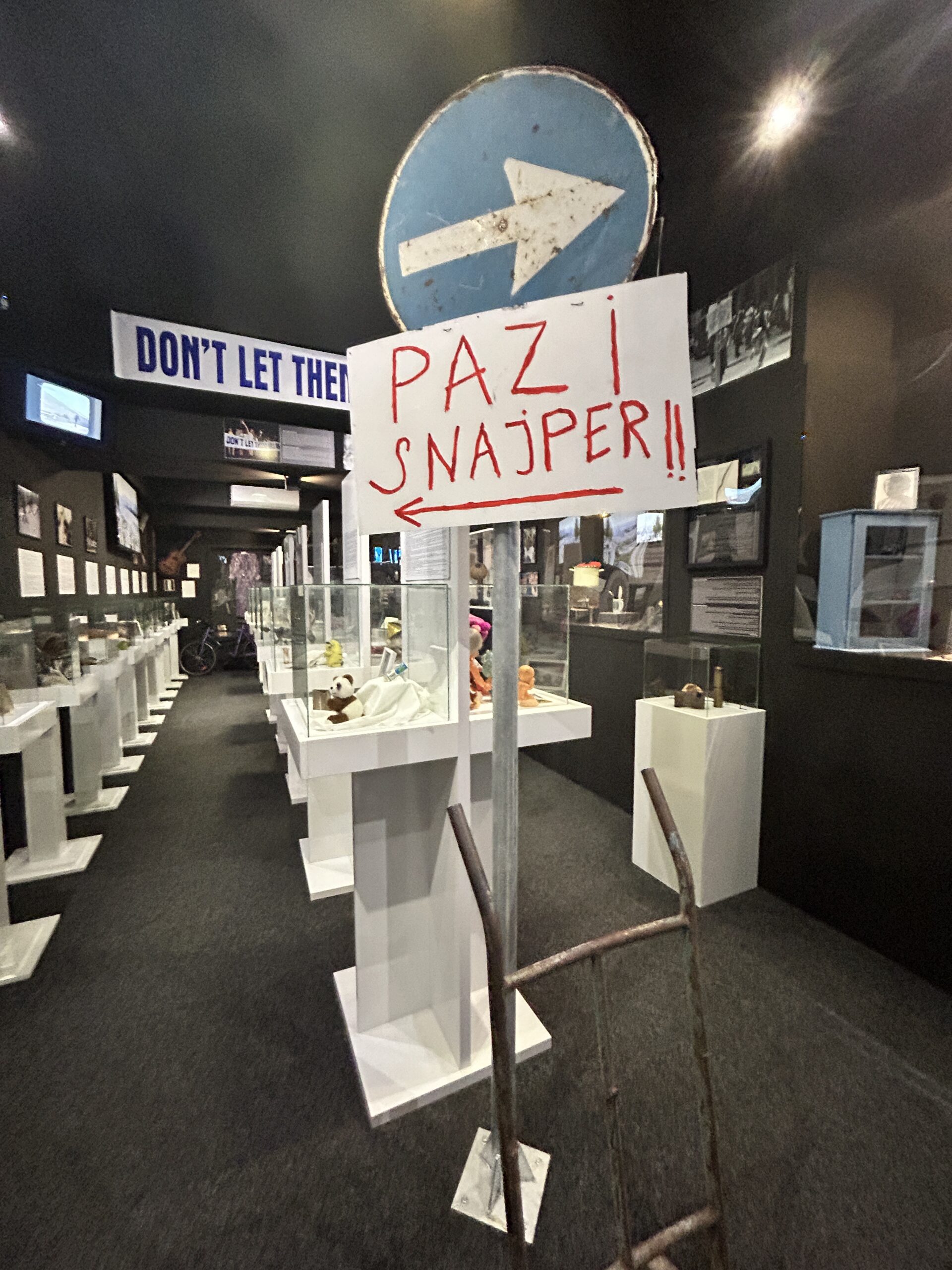 Είναι σαν να μπαίνεις στο ίδιο μουσείο κάθε φορά. Ερευνητικές ομάδες, καλλιτέχνες, ιστορικοί, συλλέκτες, συγκέντρωσαν αντικείμενα από την εποχή του πολέμου της Βοσνίας και της πολιορκίας του Σαράγιεβο που διήρκησε από τις 5 Απριλίου 1992 έως τις 29 Φεβρουαρίου 1996 (1.425 ημέρες) και ήταν τρεις φορές μεγαλύτερη από τη Μάχη του Στάλινγκραντ, μεγαλύτερη από την πολιορκία του Λένινγκραντ (η μεγαλύτερη μιας πρωτεύουσας στην ιστορία του σύγχρονου πολέμου).