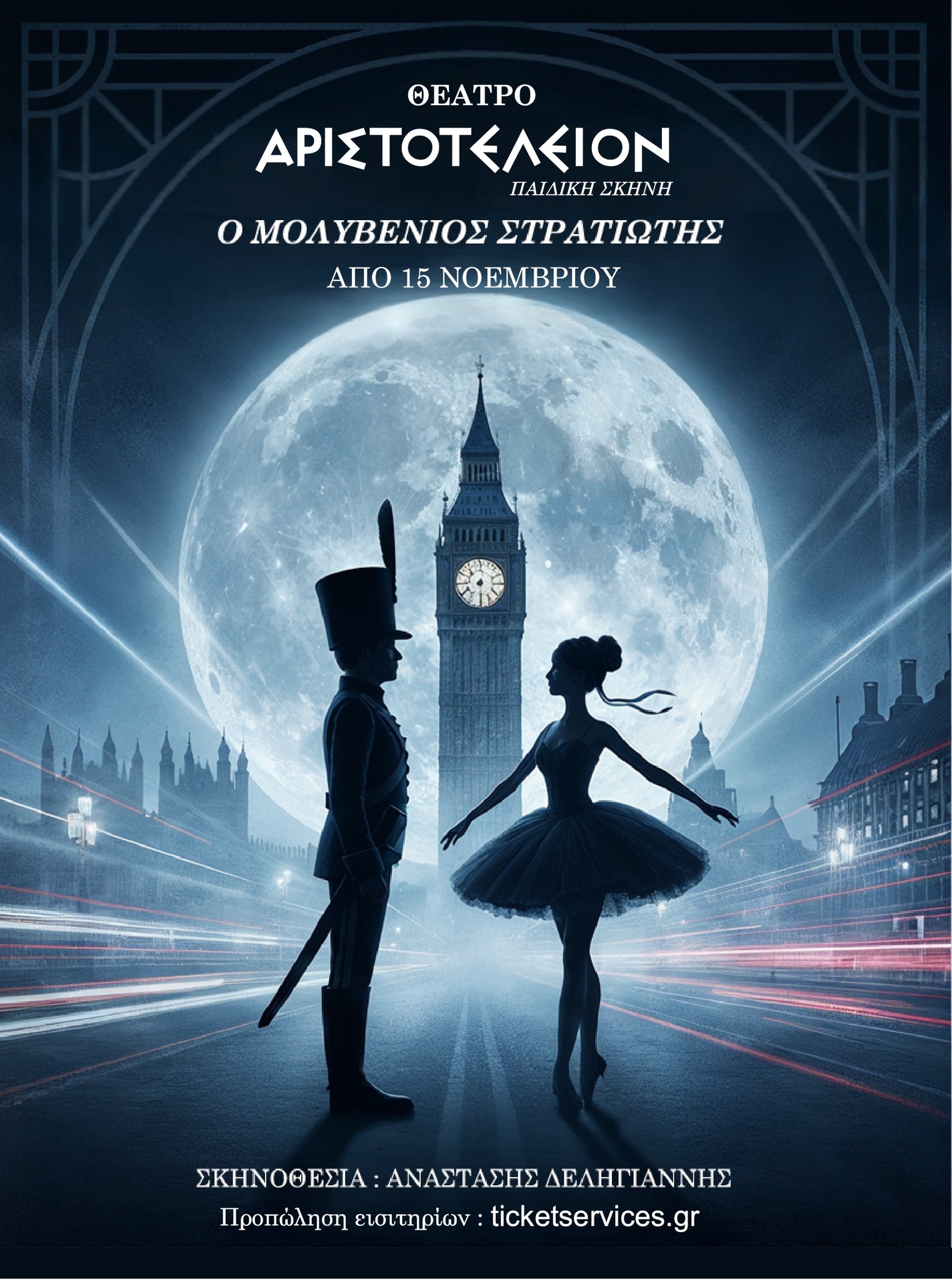 Το θέατρο «Αριστοτέλειον» παρουσιάζει το μαγευτικό Μολυβένιο Στρατιώτη σε μια πρωτότυπη θεατρική διασκευή και σκηνοθεσία του Αναστάση Δεληγιάννη. Θα ζωντανέψει η μαγευτική ιστορία γεμάτη μελωδίες και χορό, που θα μας οδηγήσει σε μια ιστορία γεμάτη συναισθήματα και αξίες που φωτίζουν τις γιορτινές μέρες.