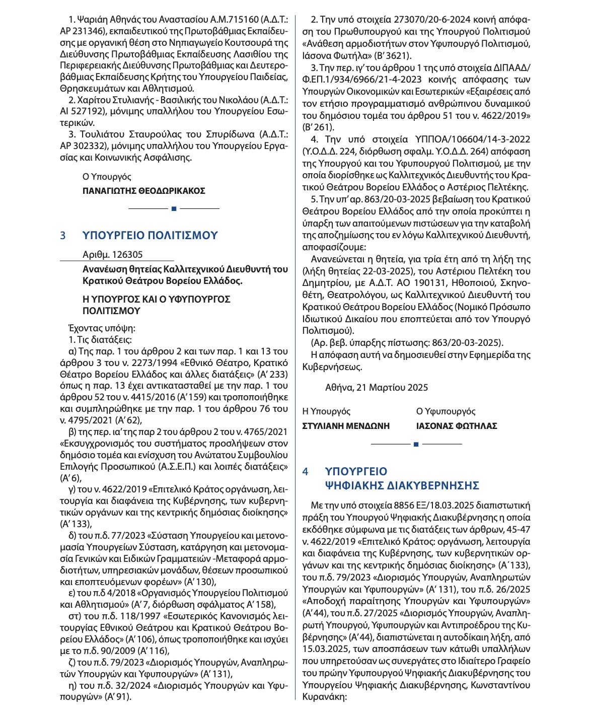 Με υπουργική απόφαση της Λίνας Μενδώνη που ανακοινώθηκε με ΦΕΚ στην Εφημερίδα της Κυβερνήσεως στις 4/4 και κοινοποιήθηκε στο ΚΘΒΕ ανανεώνεται για τρία χρόνια η θητεία του Αστέρη Πελτέκη στη διεύθυνση του ΚΘΒΕ.