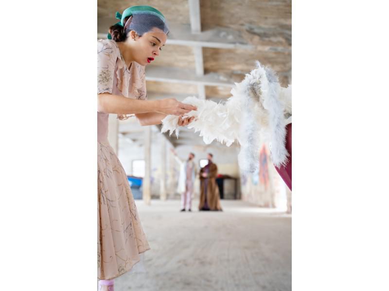 Η ώρα περνάει, απαλά και δημιουργικά. Ο χρόνος κυλά και εγώ δεν μπορώ να ακολουθήσω. Το κομμάτι της πρόβας που καταγράφω, φτάνει στο τέλος του και ύστερα η ομάδα «Monstrare Art Group» πρέπει να ξεκινήσει τη δράση από την αρχή. Πόσο τυχερή νιώθω που μου επιτρέπουν να γίνω μέρος της μαγείας της δόμησης ενός έργου. Από την άσπρη μπογιά του προσώπου, μέχρι τα αυτοσχέδια φτερά και πούπουλα. Πρέπει να φύγω, αρκετά τάραξα την αρμονία του ανεπιτήδευτου χώρου. Τους καληνυχτίζω με την πρώτη ευκαιρία, τους ευχαριστώ και φεύγω γεμάτη.