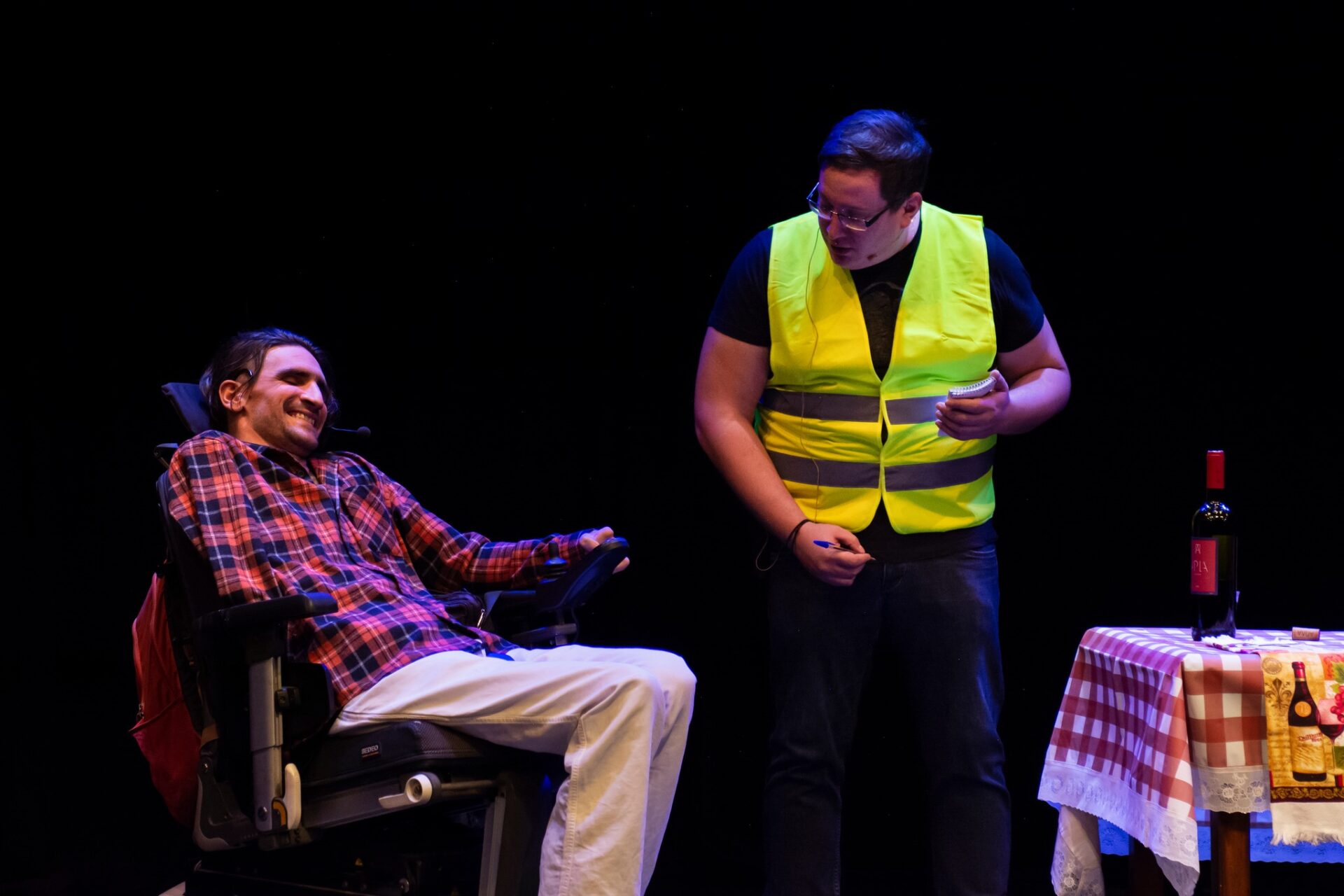 Γράφει η περιγραφή της παράστασης: «Ένα έργο που “παντρεύει”’ το χιούμορ με την αναπηρία, καθώς αποδεικνύει με το πιο διασκεδαστικό τρόπο ότι αυτά τα δύο μπορούνε να πάνε μαζί και μάλιστα μπορούνε να μας οδηγήσουν σε κοινωνίες με λιγότερη ανισότητα και λιγότερα ταμπού». Αυτές οι τρεις γραμμές θα μπορούσαν να συνοψίσουν την κοσμοθεωρία του Δημήτρη Αντωνίου, του ανθρώπου που έγραψε και σκηνοθέτησε την παράσταση, πρωταγωνιστώντας κιόλας με το Μιχάλη Σαρόπουλο, stand up comedian και αθλητικογράφο.