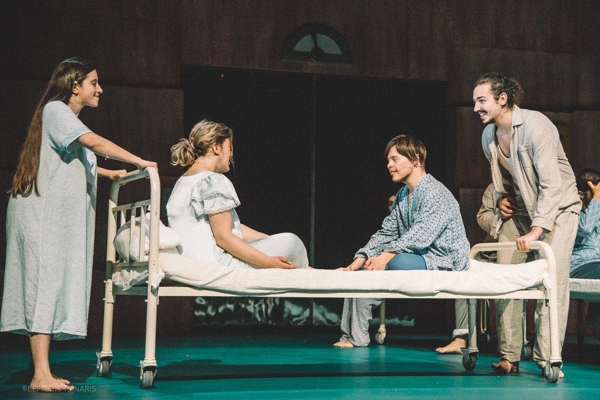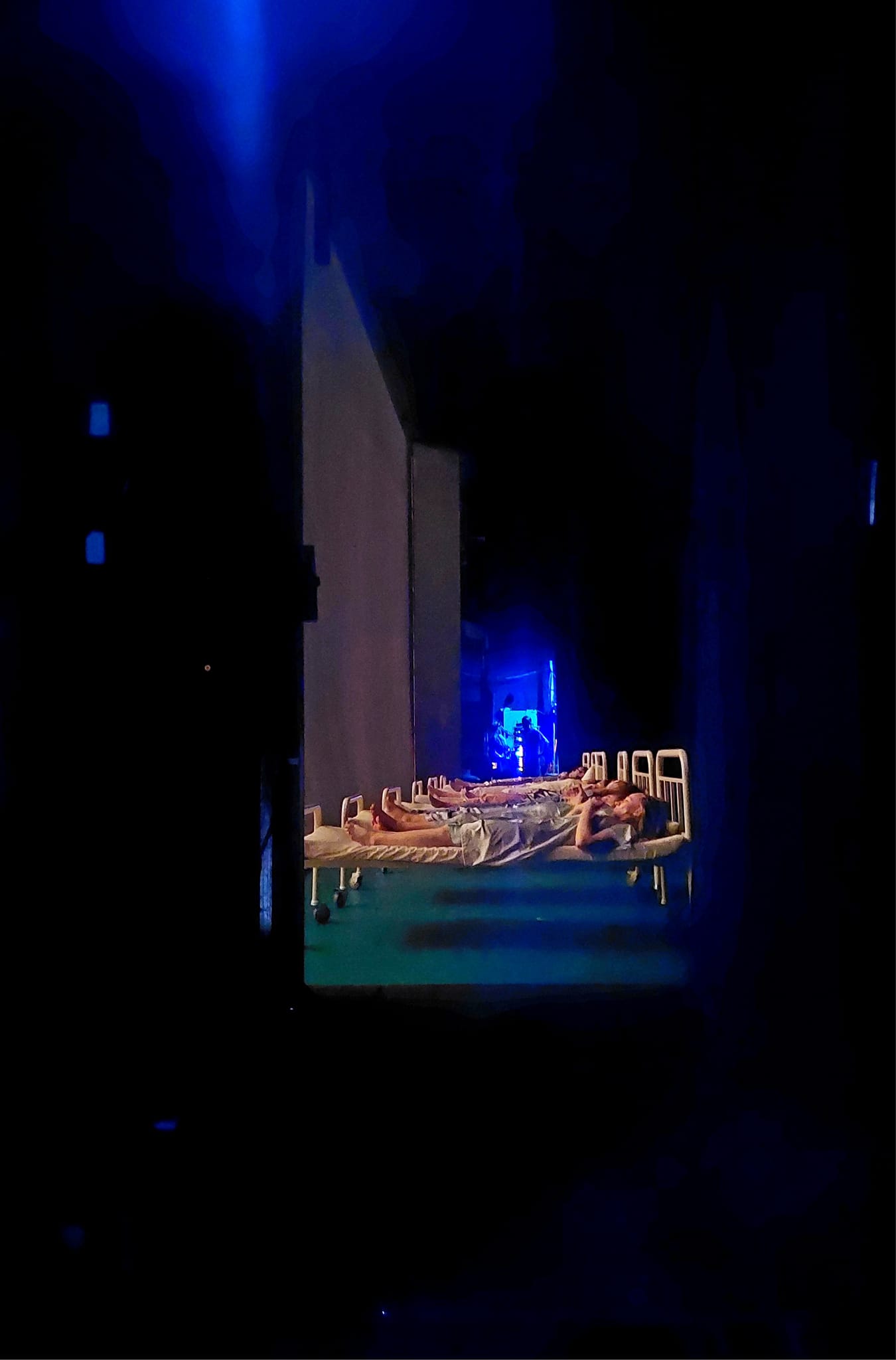 Αρωγός σε αυτές τις μεταπτώσεις ο φωτιστικός σχεδιασμός του Richard Anthony και το μουσικό χαλί της Ελένης Ευθυμίου. Ευφυές, λειτουργικό, συμβολικό και απόλυτα ευθυγραμμισμένο με το σκεπτικό της παράστασης και το σκηνικό της Ε. Κιρκινέ, με τα νοσοκομειακά κρεβάτια, εκεί όπου γεννιέται η ζωή και εκεί όπου χάνεται. Και εδώ η ειρωνεία είναι ότι και στις δύο περιπτώσεις το κρεβάτι είναι ο υποδοχέας του κλάματος: Από τη μια το κλάμα του μωρού μόλις πάρει τις πρώτες του ανάσες ως ξεχωριστή οντότητα πλέον και το κλάμα των συγγενών που αποχαιρετούν τον νεκρό που κάποτε ήταν μωρό.