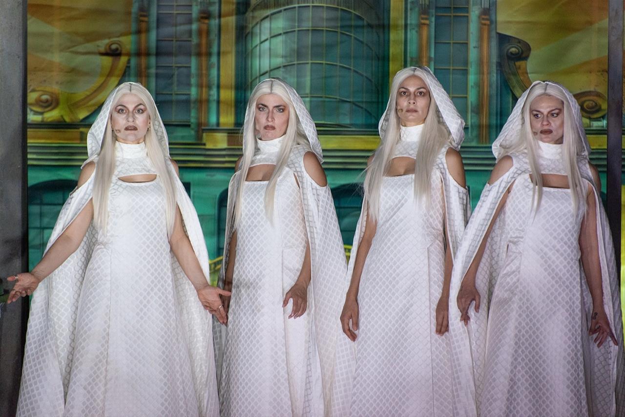 Εξαιρετικά σε έμπνευση, λάμψη και εικόνα τα κουστούμια της Ηλένιας Δουλαρίδη. Εντυπωσιακά, όπως εντυπωσιακό είναι γενικά το σύνολο της δουλειάς της. Θυμίζω τον «Επιθεωρητή», πάλι σε σκηνοθεσία Γιάννη Κακλέα (Βασιλικό, 2023).