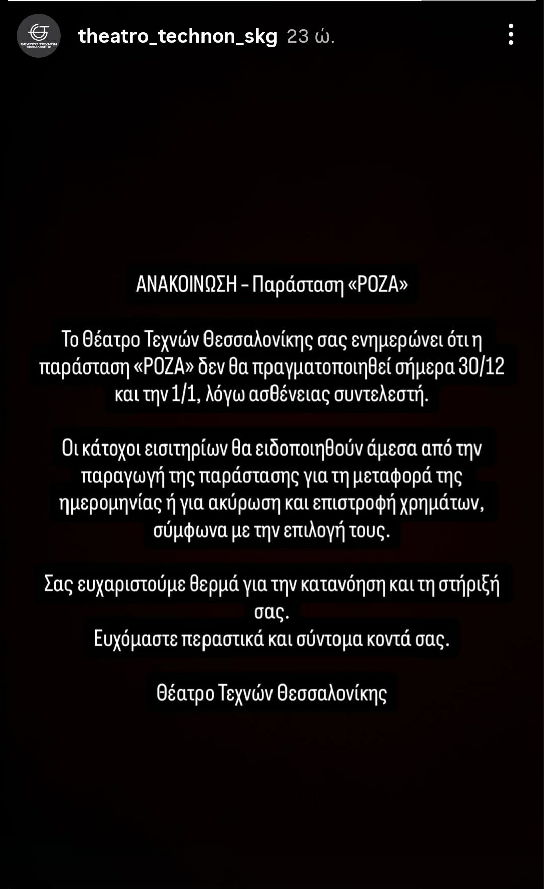 Η παράσταση που αναβάλλεται την Πρωτοχρονιά στη Θεσσαλονίκη