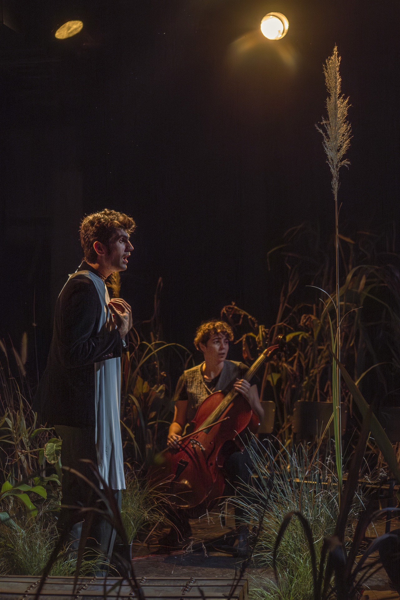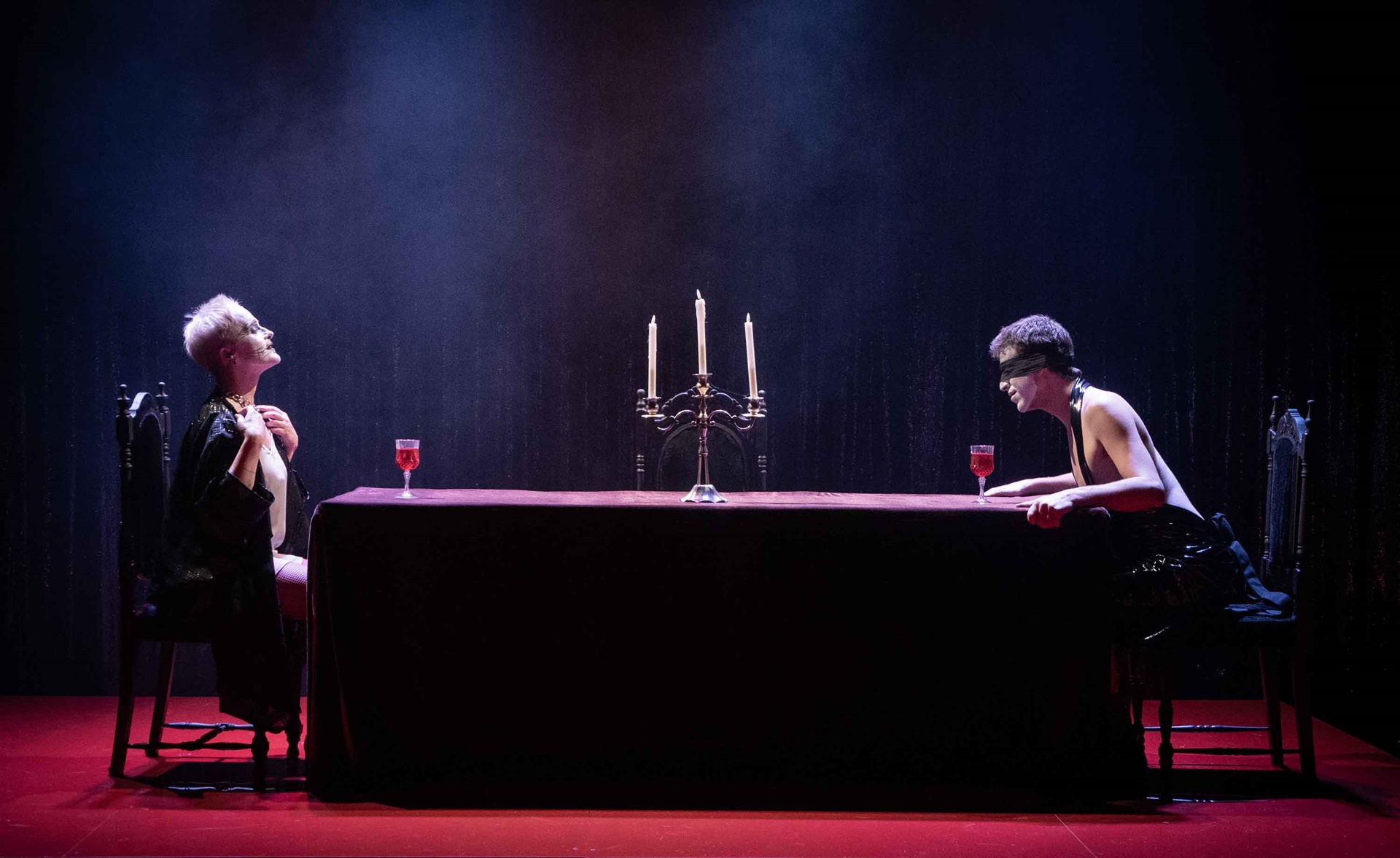 Η σκηνή μεταμορφώνεται σε έναν ιδιόμορφο, σαγηνευτικό χώρο με αύρα καμπαρέ, έναν τόπο όπου το κοινό γίνεται μάρτυρας ενός σκοτεινού σόου που ακροβατεί ανάμεσα στη φαντασία και την πραγματικότητα, τον ρεαλισμό και το μεταφυσικό, τη βία και την τρυφερότητα.