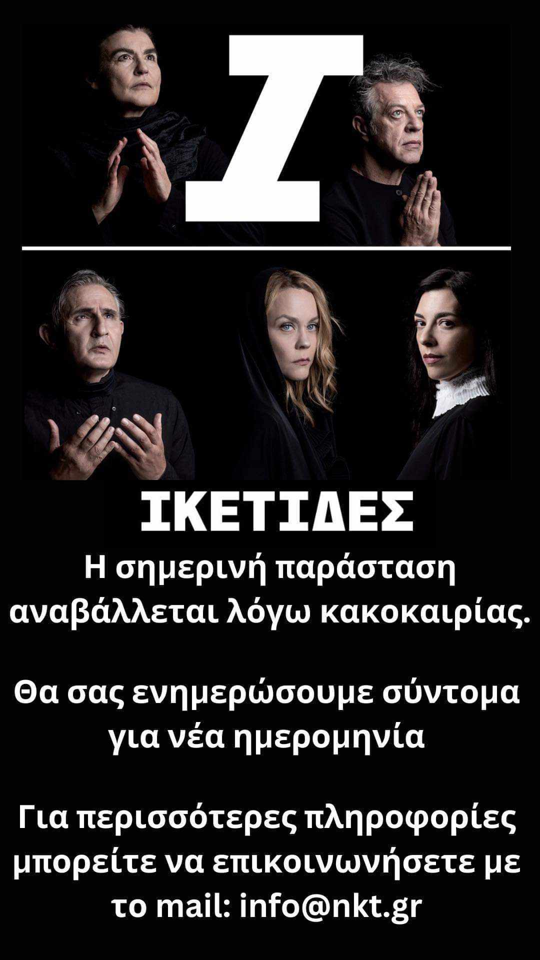 Αναβάλλεται η αποψινή θεατρική παράσταση “Ικέτιδες” λόγω της κακοκαιρίας που θα γινόταν στο Θέατρο Δάσους.