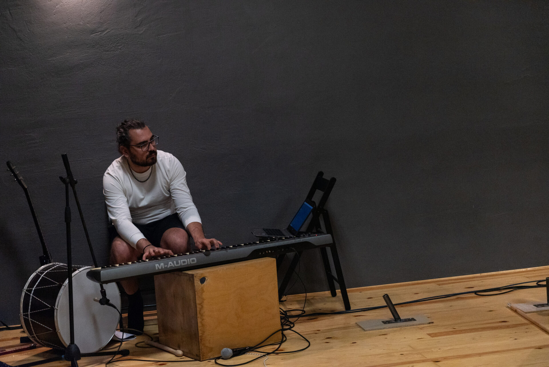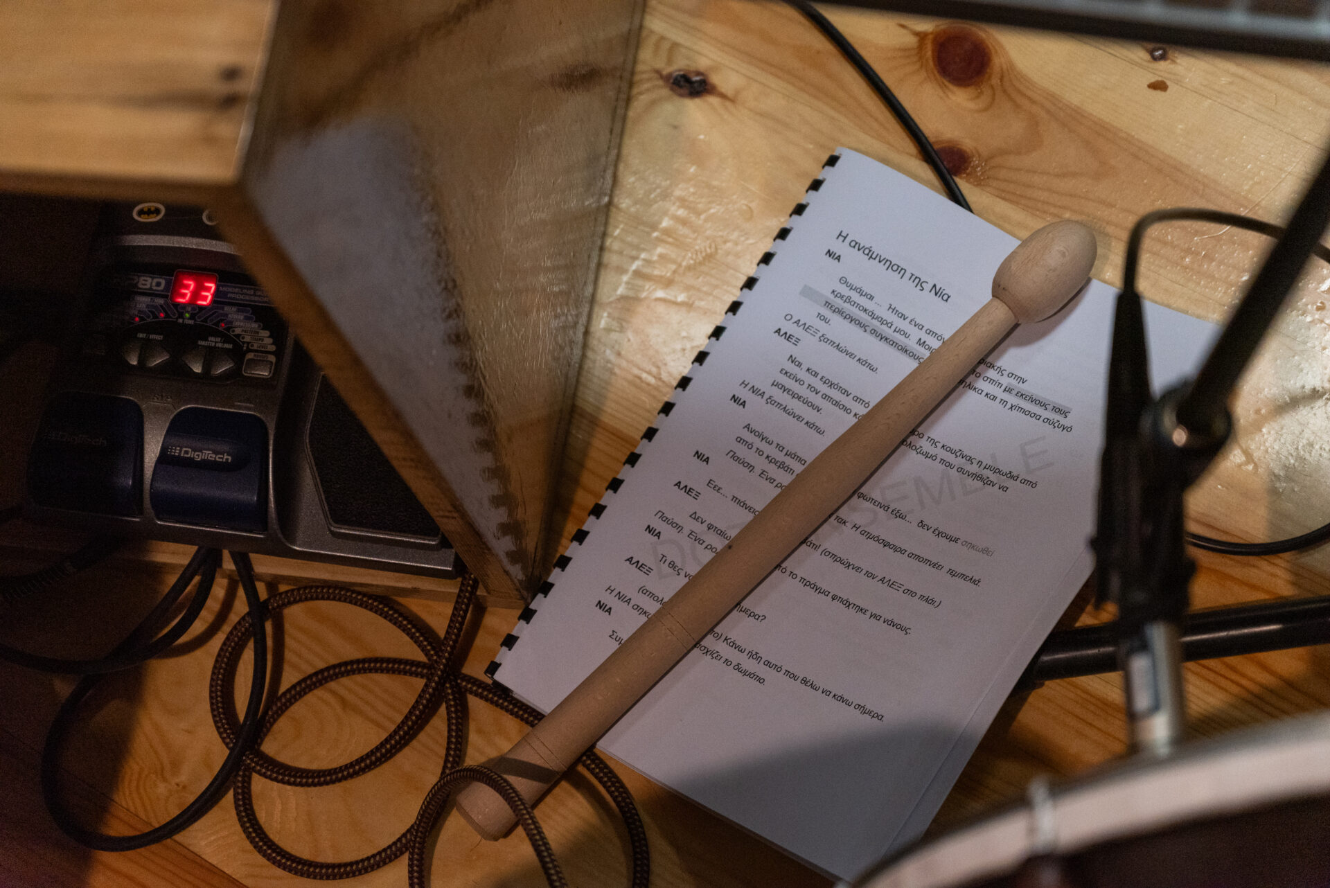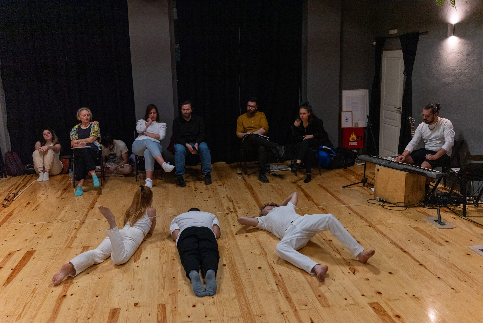Ακριβώς έτσι είναι. Και έβδομος είναι το φως. Επειδή ακριβώς αποφασίσαμε να έχουμε ελάχιστα σκηνικά, έπρεπε να ενισχύσουμε την ψευδαίσθηση και την εμπειρία με άλλα αισθητηριακά μέσα. Οπότε ένα σημείο είναι η μουσική και μάλιστα, ήταν απαίτηση να είναι ζωντανή. Γιατί πρέπει να μπορεί να ψυχανεμίζεται ο μουσικός, ο Μάριος Αποστολακούλης, τη σύνδεση σκηνής και πλατείας και αντίστοιχα να τροποποιήσει αυτό που κάνει. Υπάρχουν μάλιστα και συγκεκριμένες οδηγίες για κάθε περίπτωση. Αντίστοιχα, θα έχουμε φωτιστικά εφέ από την Αθηνά Μπανάβα, με το φως να δημιουργεί και να ενισχύσει τις εικόνες. Οπότε έχουμε ηχοτοπία και εικόνες ακριβώς για να συνδεθεί ο θεατής. Μαζί και με την κίνηση της Μαριάνθης Ψωματάκη, έχουμε ένα πολύ καλό σύνολο νομίζω.