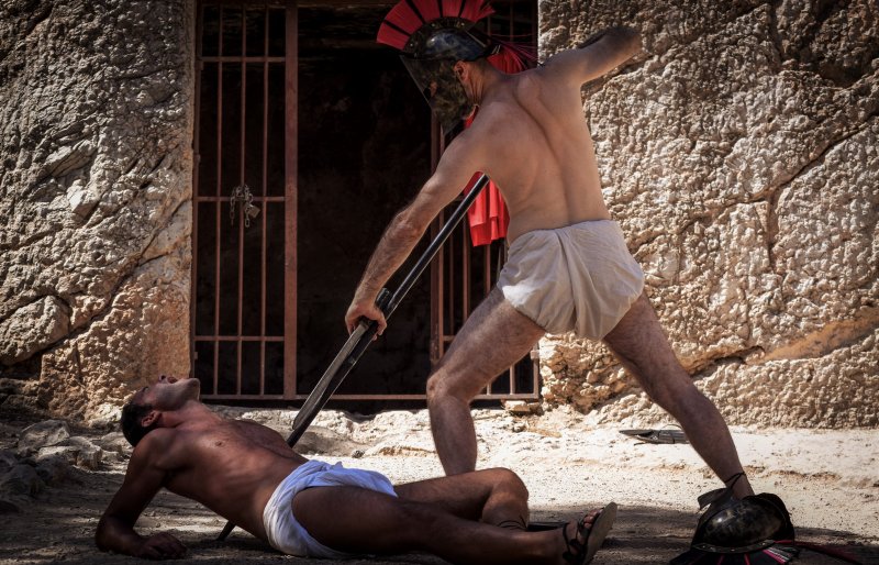 Συντελεστές: Σκηνοθεσία : Στέφανος Κακαβούλης Περικλής: Στέφανος Κακαβούλης Σπαρτιάτης πολεμιστής: Χάρης Γεωργιάδης Αθηναίος πολεμιστής: Πάνος Γεωργούλης Φωνή Αφηγητή: Θοδωρής Κατσαφάδος Χορογραφία μάχης: Χάρης Γεωργιάδης