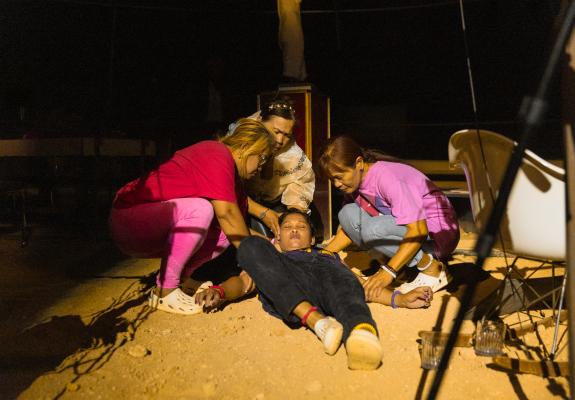 Σε αυτό το σχεδόν σεληνιακό τοπίο, με δεσπόζουσα εικόνα μια λίμνη κατακόκκινη από τα απόβλητα της εξόρυξης χαλκού (το πλουσιότερο μέταλλο που διαθέτει η Κύπρος από αρχαιοτάτων χρόνων), με λοφίσκους ολόγυρα, και με τους θεατές καθισμένους στη μία πλευρά πίσω από μια σειρά ευθυγραμμισμένων τραπεζιών καλυμμένων με λευκό τραπεζομάντηλο, κάτι σαν ένα τελετουργικό (αλά ντα Βίντσι) «Μυστικό Δείπνο» ή, αν προτιμάτε το πιο βιβλικό, «Τελευταίο Δείπνο», ο Ερωτοκρίτου και οι συνεργάτες του από τη ομάδα Fresh Target Theatre Ensemble πέτυχαν εν πρώτοις έναν κατασκευαστικό άθλο: μετέτρεψαν αυτή την άγρια, όσο και δηλωτική ετεροτοπία σε ένα πολύ υψηλής αισθητικής χώρο δράσης (άφθονα τα εύσημα στην Έλενα Κοτασβίλη), που υποστήριζαν οι υποβλητικοί και πολύ σύνθετοι φωτισμοί του Χρίστου Χριστοδούλου και το αποκαλυπτικό και πολυσημαίνον ηχητικό τοπίο του Χρίστου Γερολατσίτη και Χριστοδούλου, καθώς επίσης και οι μεγάλες οθόνες προβολής βινετοσκοπημένων τρέιλερ ή live κινηματογραφήσεων.