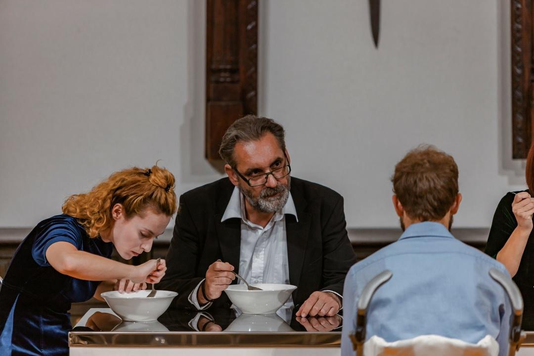 Κάτω από τις λάμπες ενός ανελέητου φωτός, γύρω από ένα τραπέζι (εύστοχη και λειτουργική σύλληψη της Πηνελόπης Χατζηδημητρίου), ο σκηνοθέτης ξεδίπλωσε με χειρουργικές κινήσεις το δυσβάσταχτο, το αφόρητο, το ανελέητο της ανθρώπινης φύσης. Χωρίς τίποτε περιττό που να σκιάσει την παραμικρή λέξη, την παραμικρή έσωθεν φωνή, που προσπαθεί να εξέλθει.